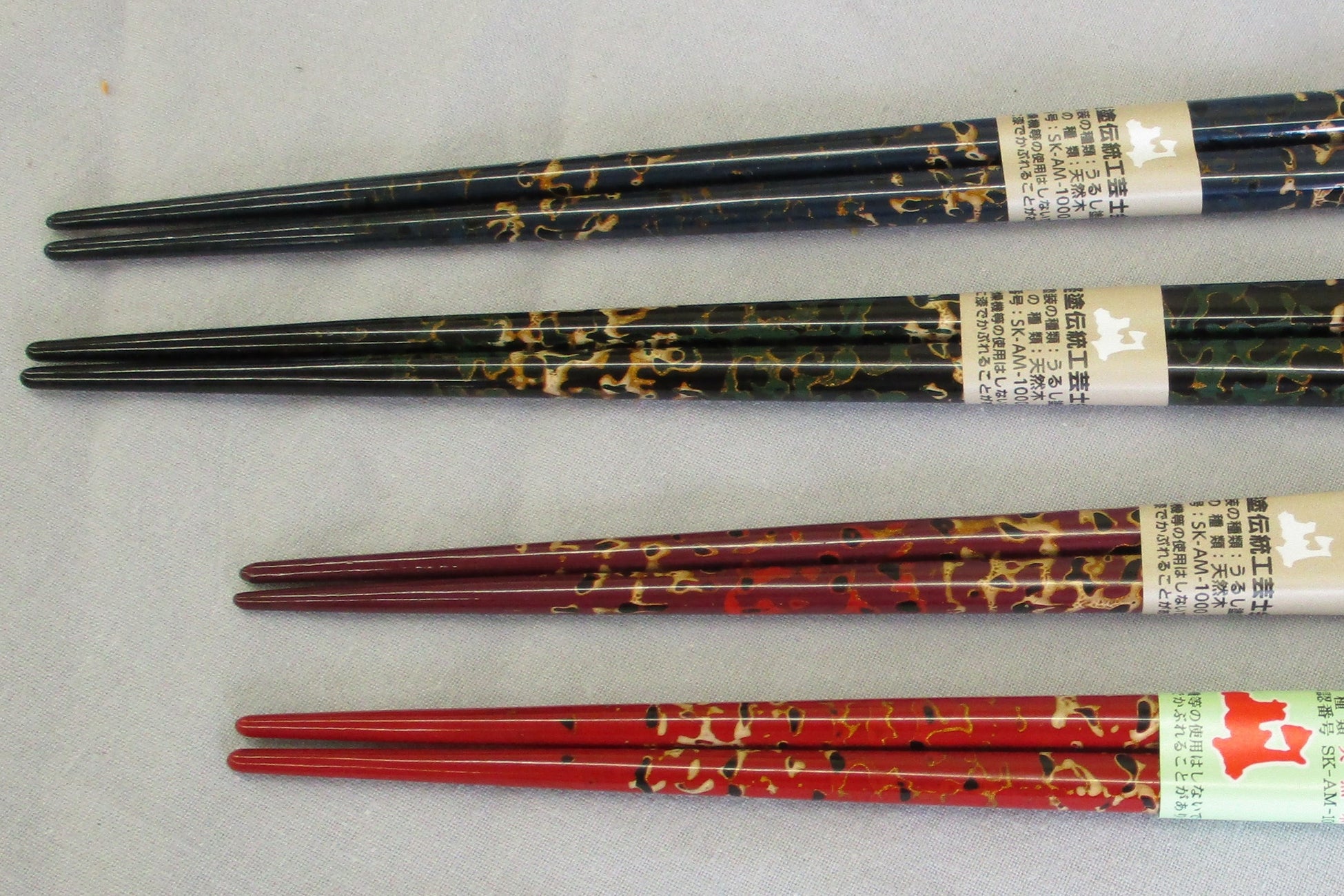 研ぎだした箸を伝統工芸士が漆で艶をつけて完成させます。