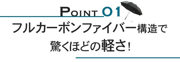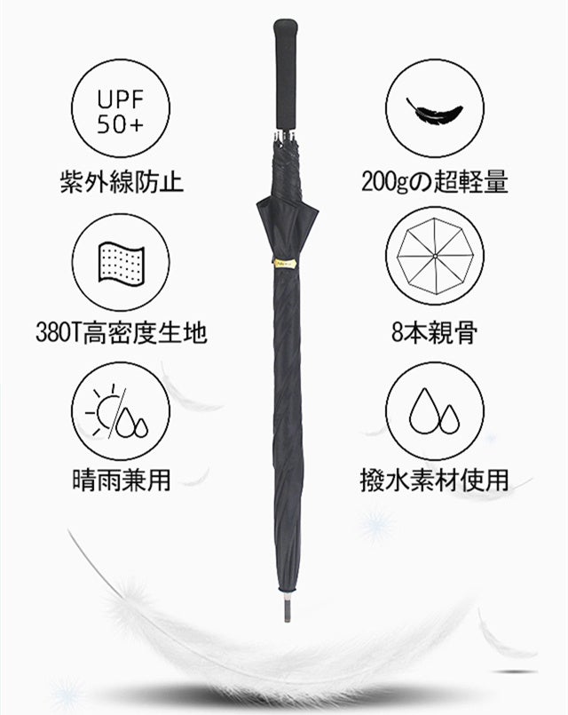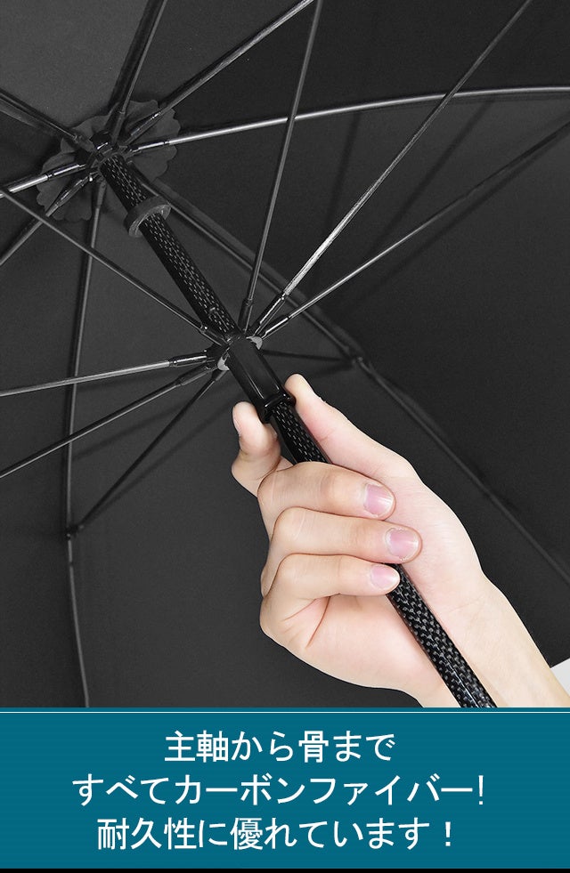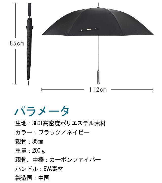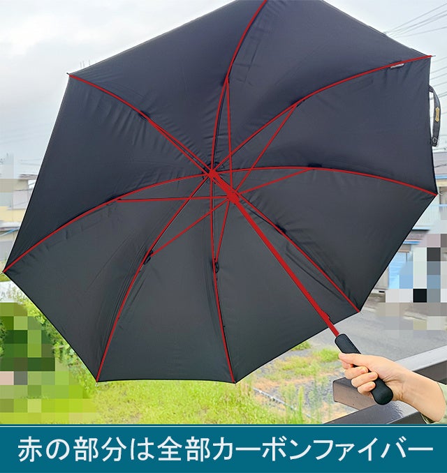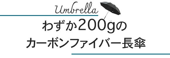 - カーボンファイバーを採用した長傘で重量がわずか200g、驚きの軽さです!