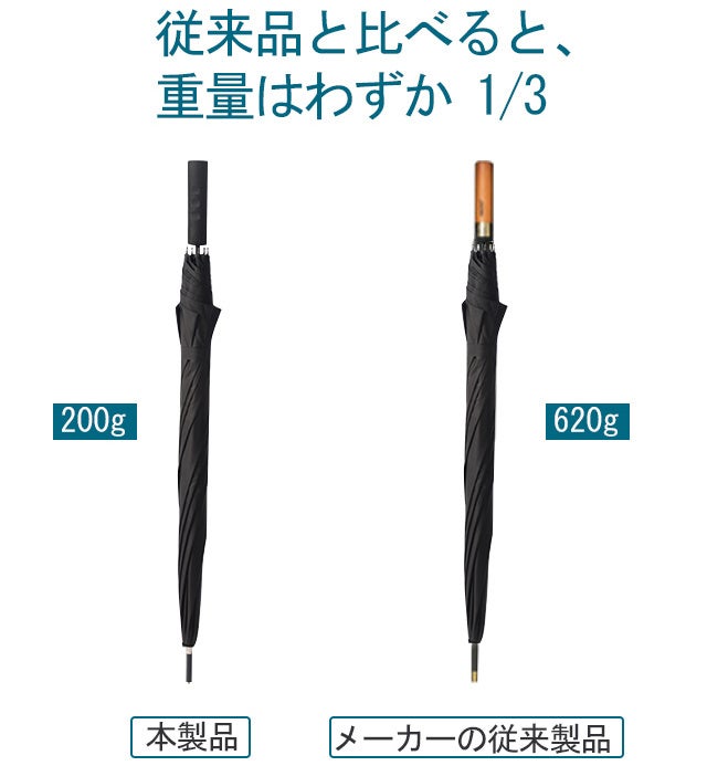 従来の傘のおよそ1/3の重さに抑えることができました。