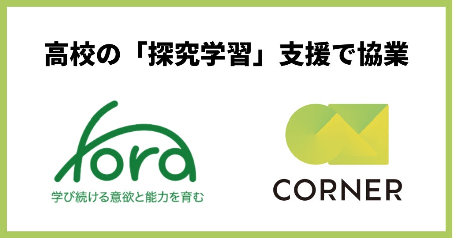 一般社団法人Fora(所在地:東京都中央区 代表理事:藤村 琢己、以下Fora)は、教育現場の課題解決と探究学習の充実を目的に、株式会社コーナー(所在地:東京都渋谷区 代表取締役:門馬 貴裕、以下コーナー)と協業を開始します。
