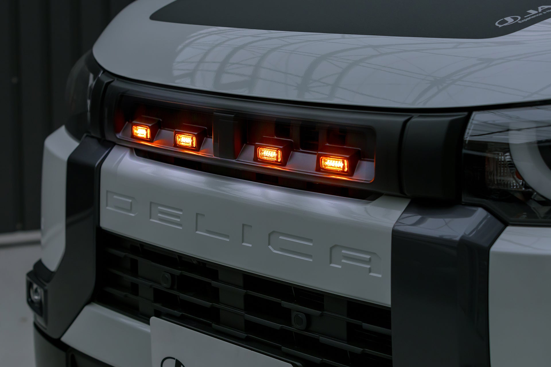 デリカミニのフロントフェイスにアクセントを加える「フロントグリル」を発売します。シンプルなデザインでありながらノーマルとは一線を画すスポーティなフロントグリルに、ジャオスロゴ入りのアンバー色の高発光LEDランプのマウントによりドレスアップ効果を高めました。アンバー色のグリルマーカーは、夜間や悪天候時に周囲へ存在をアピールすることで安全面も期待できます。また、ハーネスは各部をコネクターで接続する専用品なので車両の配線を傷めることなく安全に取り付け可能です。