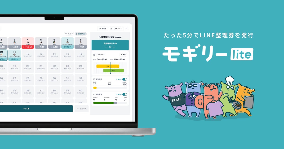 mogily株式会社(本社:東京都渋谷区、CEO:小出 諭)は、2025年6月2日(月)、LINEミニアプリで即時に整理券を発行できる新サービス『モギリーlite(モギリーライト)』を正式リリースいたします。