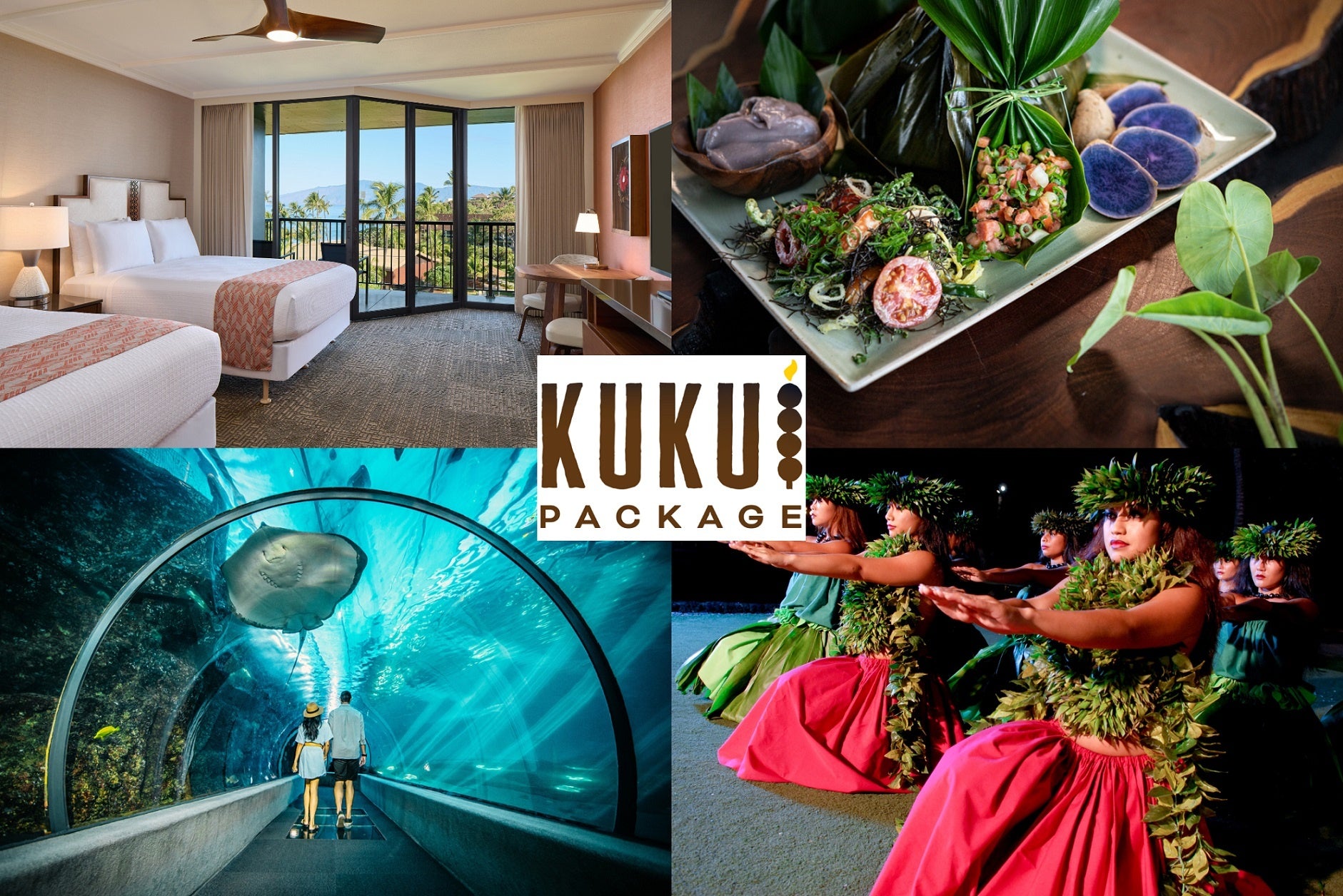 同パッケージは、2つの特別な体験が含まれています。1つは、ハワイ最大の水族館マウイ・オーシャン・センターでサンゴ礁や海洋生物の保護について説明を受けながら館内を回るプライベートガイドツアーです。もう1つは、マウイ島で人気のオールド・ラハイナ・ルアウで、ルアウ前に特別なセレモニーに参加できることです。また、ハワイで最もハワイらしいホテルと認定を受けるカアナパリビーチホテルでの5泊の滞在、オーシャンフロントレストランHuihuiでのハワイ伝統料理などの食事、ハワイ語や伝統航海術に関するカルチャーワークショップの参加も含まれています。