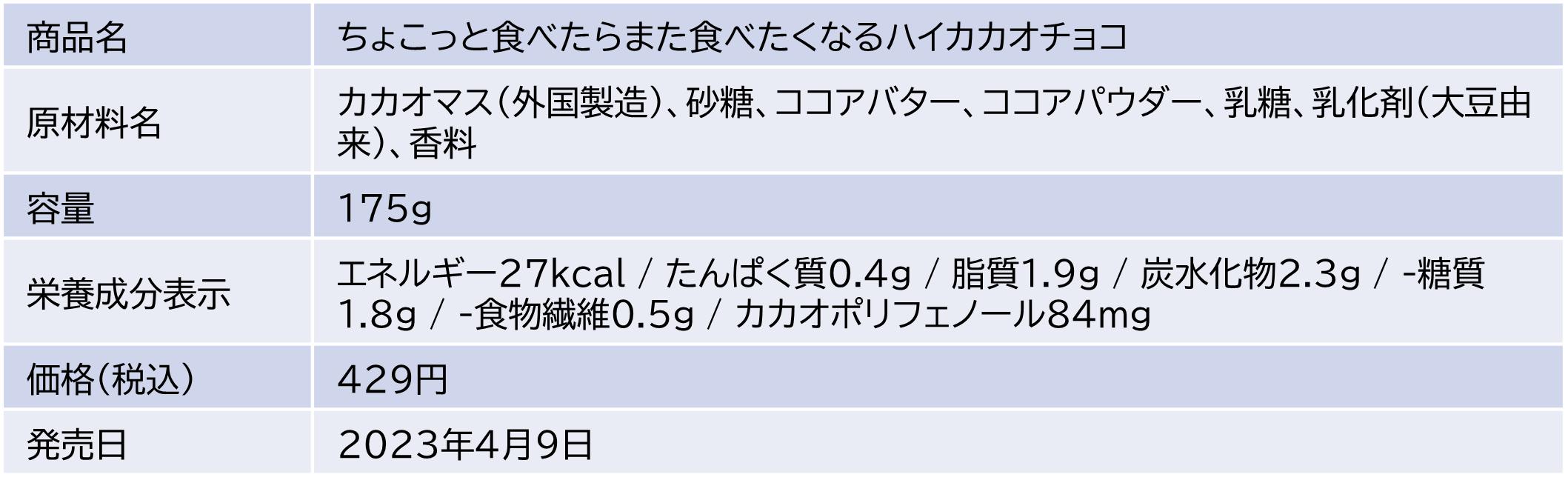 また、お客様の声を募集するページ『からだの声とくらしの声』に寄せられた、「美味しくて手頃な価格で買える高カカオチョコレートが欲しいです。」というお客様からの声から、チョコレートとしての美味しさも追求。苦味や渋味を極限まで抑えた商品が完成しました。