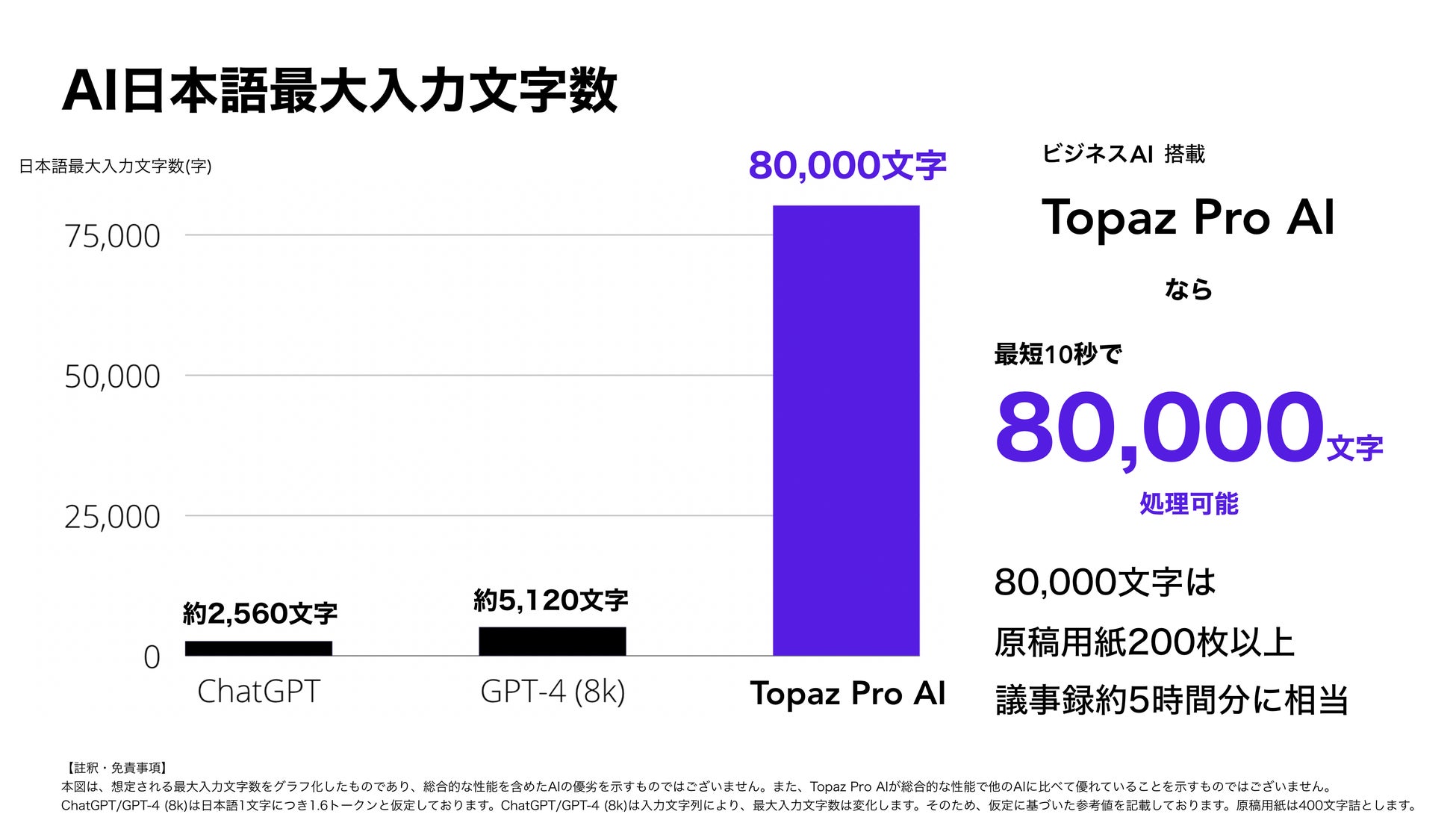 【日本初】8万文字対応の日本語AI「Topaz Pro AI」を「ビジネスAI」にてリリース