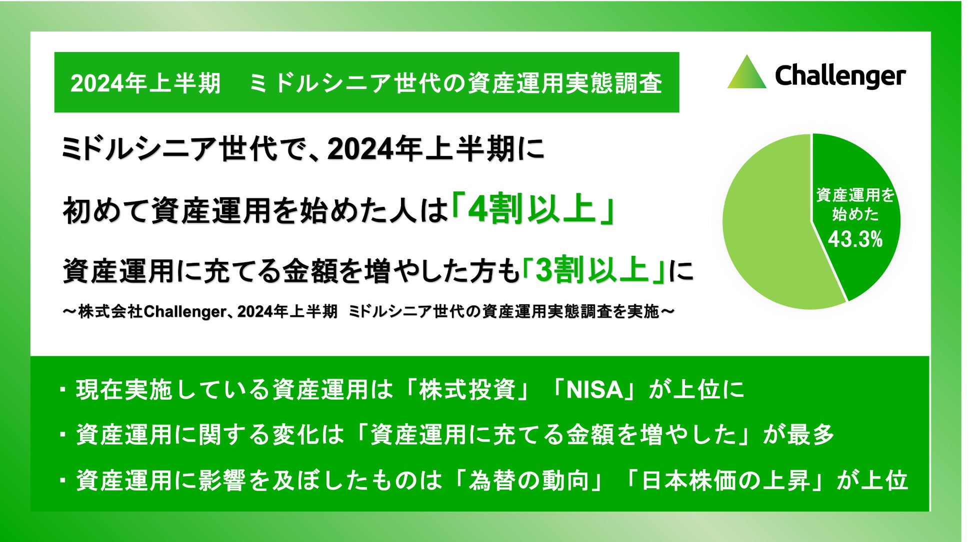 〜株式会社Challenger、2024年上半期 ミドルシニア世代の資産運用実態調査を実施〜