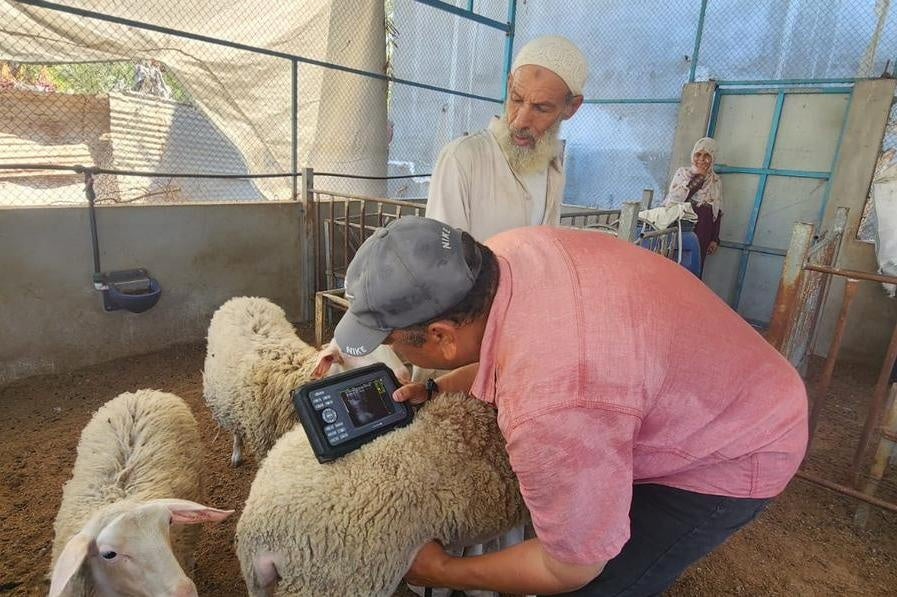 2018年以降はガザ南部で女性グループを対象に酪農支援を行い、現在もハン・ユニス県において羊の畜産農家の生計向上支援を続けています。畜産農家は、食料難が深刻化する中でも、羊肉を地域の人びとに届けるべく、困難な状況下で飼育を続けています。