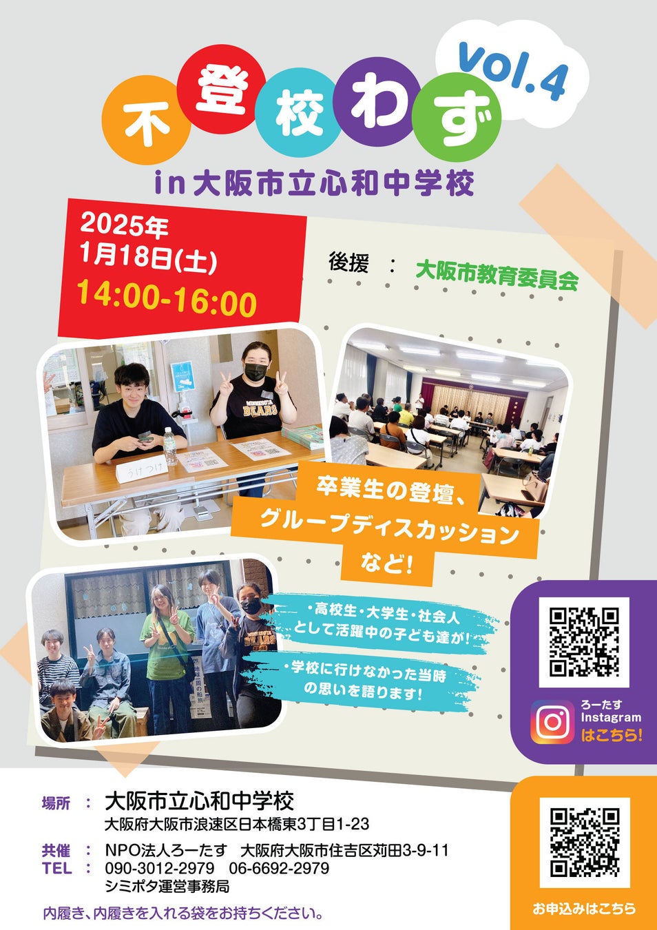 ”やっぱりまずは地元からでしょ”と、会場は不登校特例校である大阪市立心和中学校。後援は大阪市教育員会。