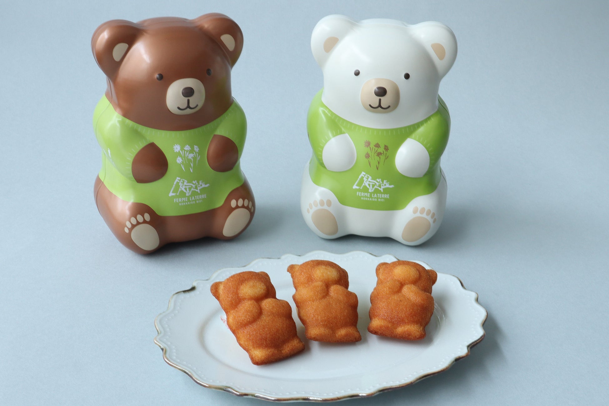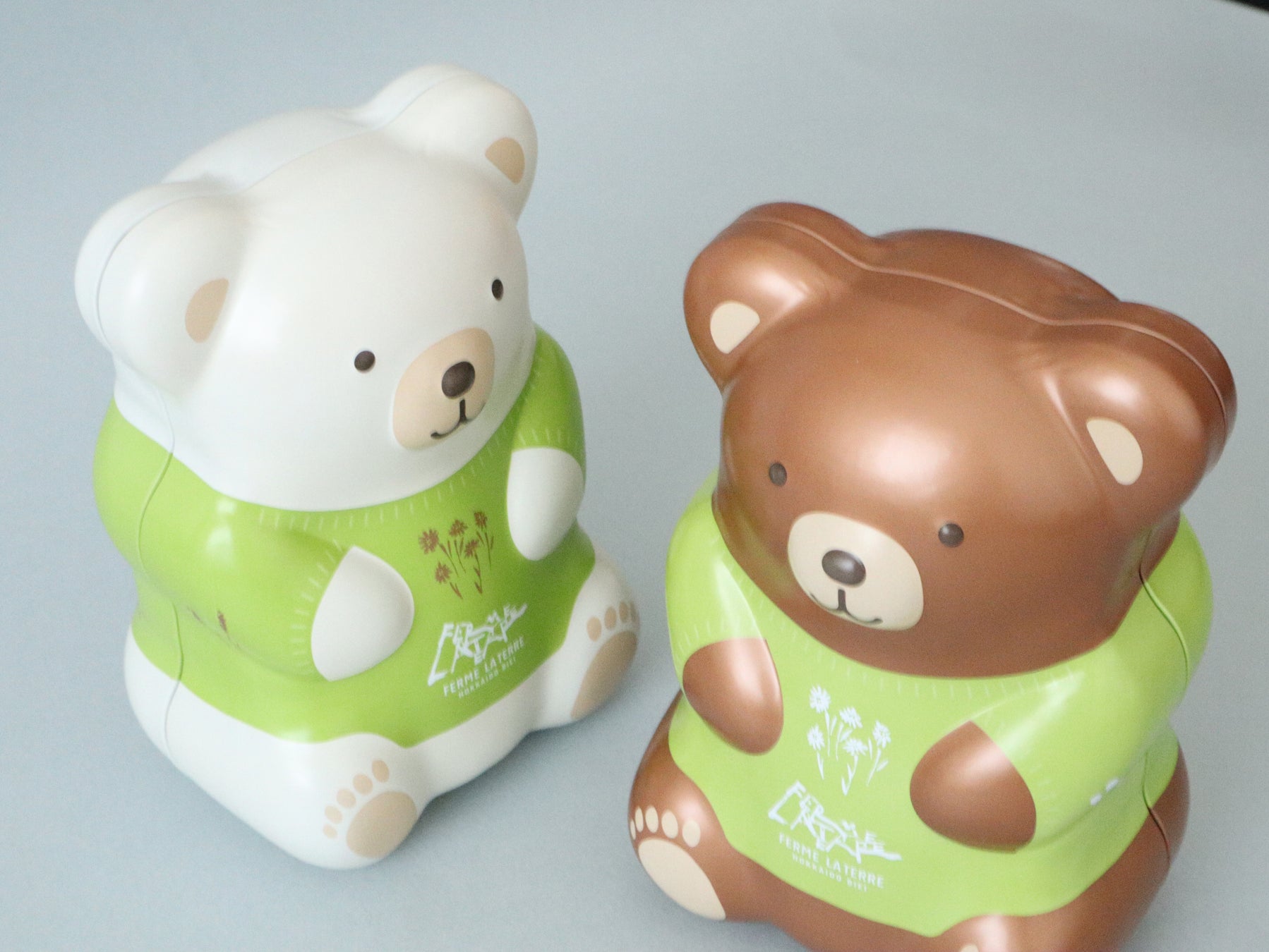 左から、美瑛本店限定ハニー・ベア缶「ホワイト」と全店展開の「ブラウン」