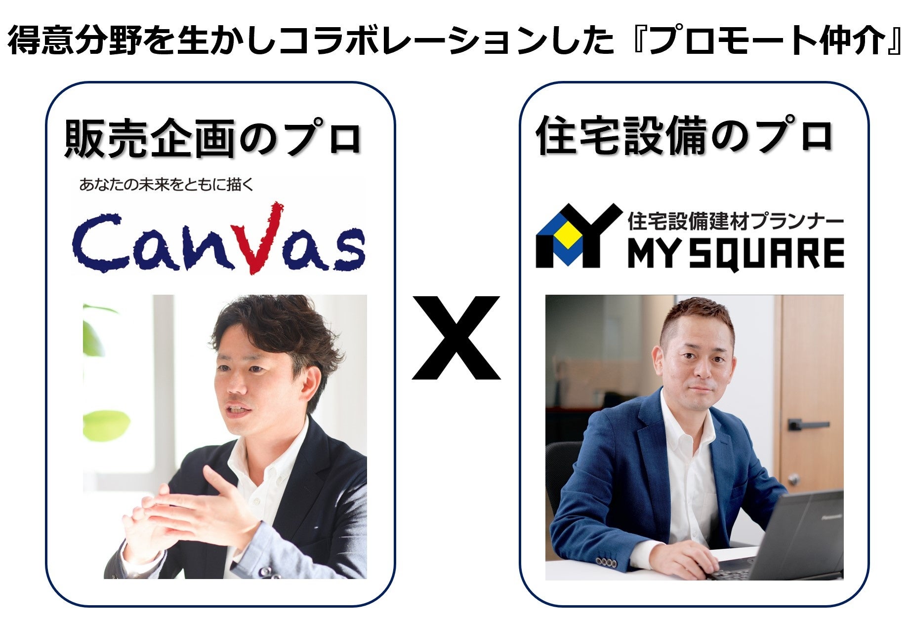 CanVas合同会社(神奈川県川崎市 代表 田中英俊)と株式会社MY SQUARE(神奈川県川崎市 代表取締役 山﨑正人)は、お互いの得意分野である「販売企画」と「住宅設備」の知見を生かした新しい不動産仲介のカタチ『プロモート仲介事業』を本格的に開始しました。
