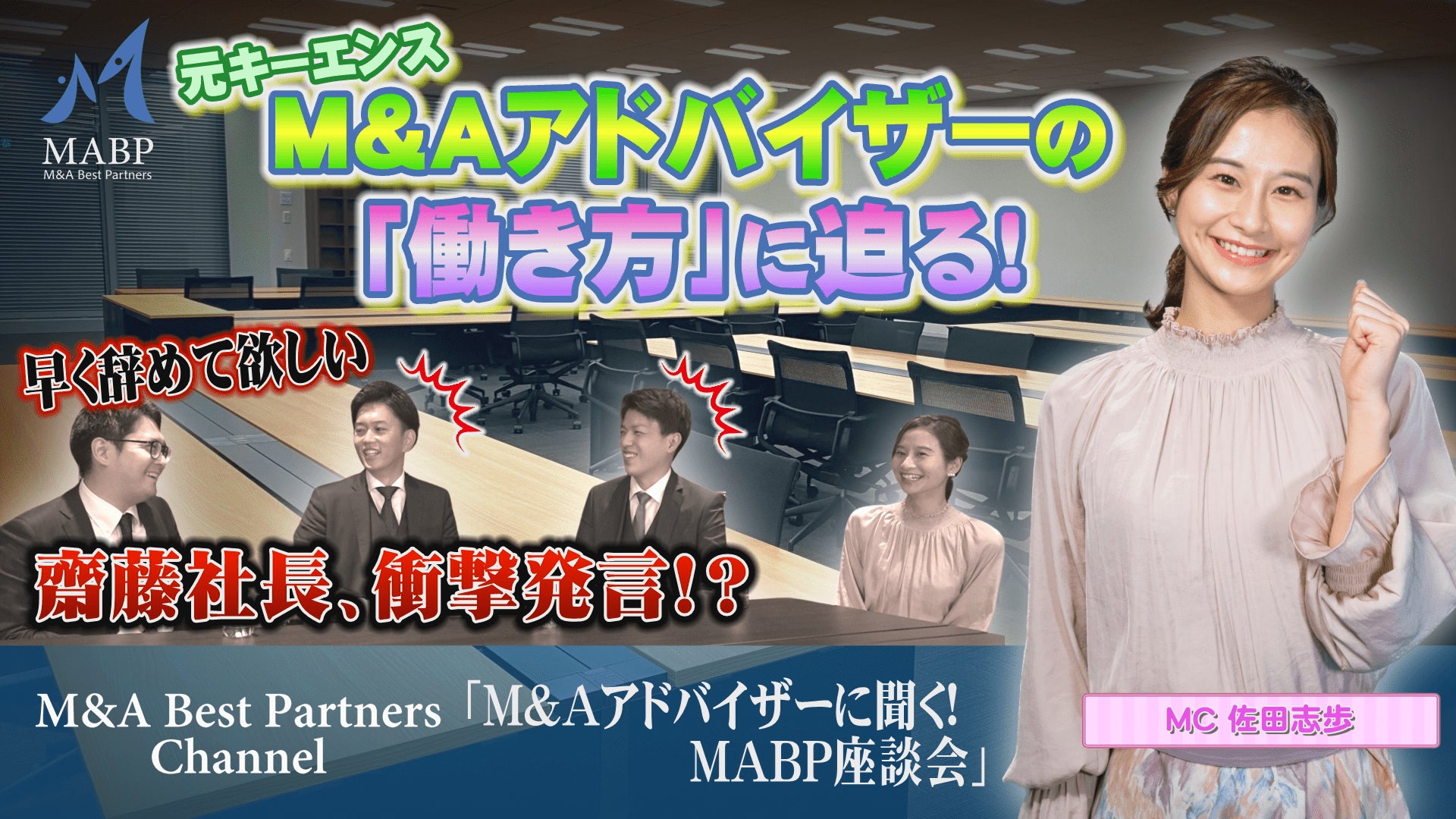 株式会社M&Aベストパートナーズ(本社:東京都千代田区、代表取締役社長:齋藤 達雄 以下M&Aベストパートナーズ)はこの度YouTubeチャンネルにて新企画を公開いたしました。M&Aベストパートナーズで働くアドバイザーにスポットを当て、中途採用の面接や働き方など、M&Aのアドバイザーを目指している方にご視聴いただきたい情報を配信しております。