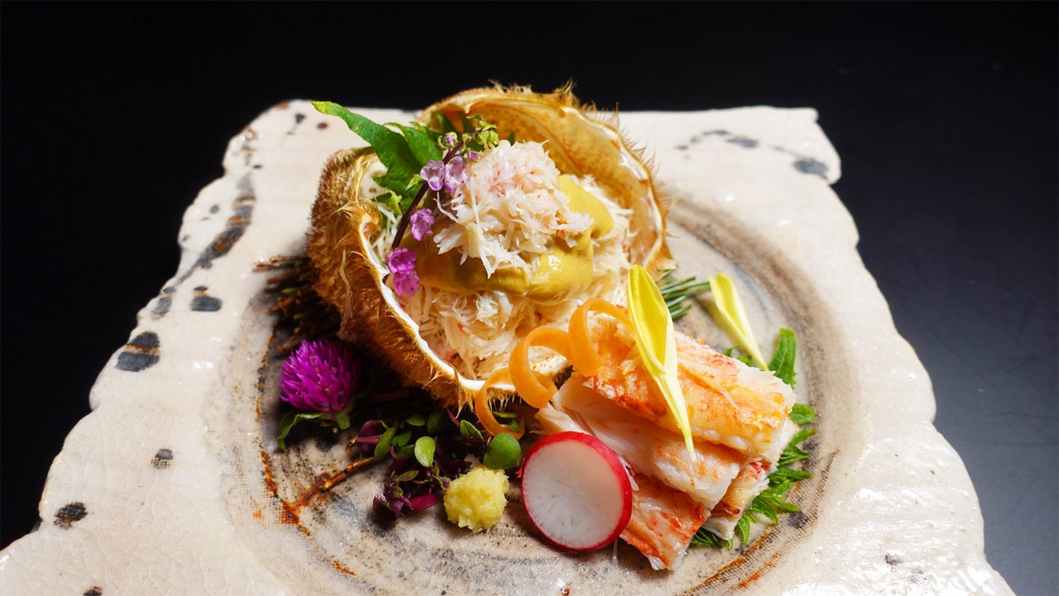 ずわい蟹、蛍烏賊、桜鱒、姫サザエなど、旬の味覚を存分にをお楽しみいただけます。