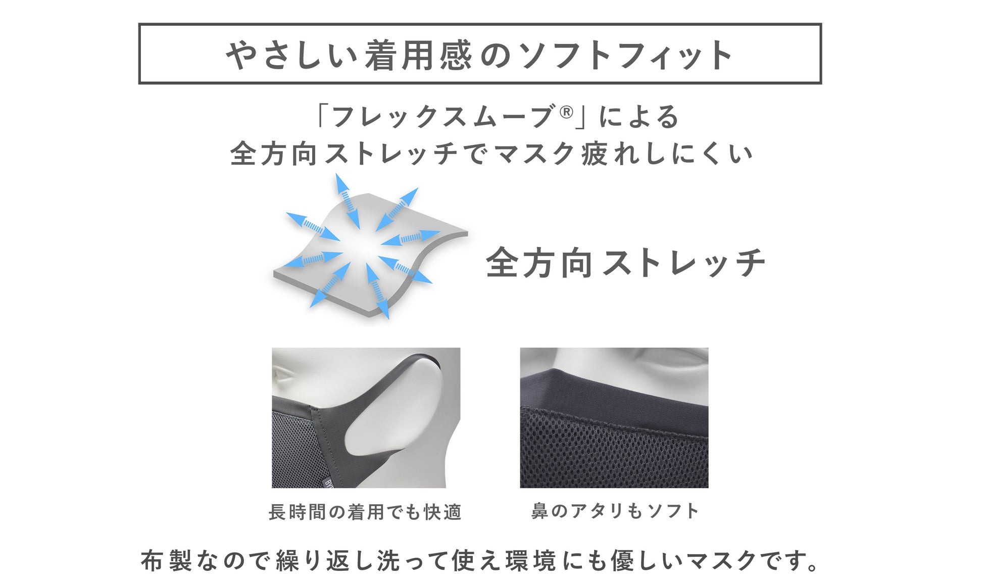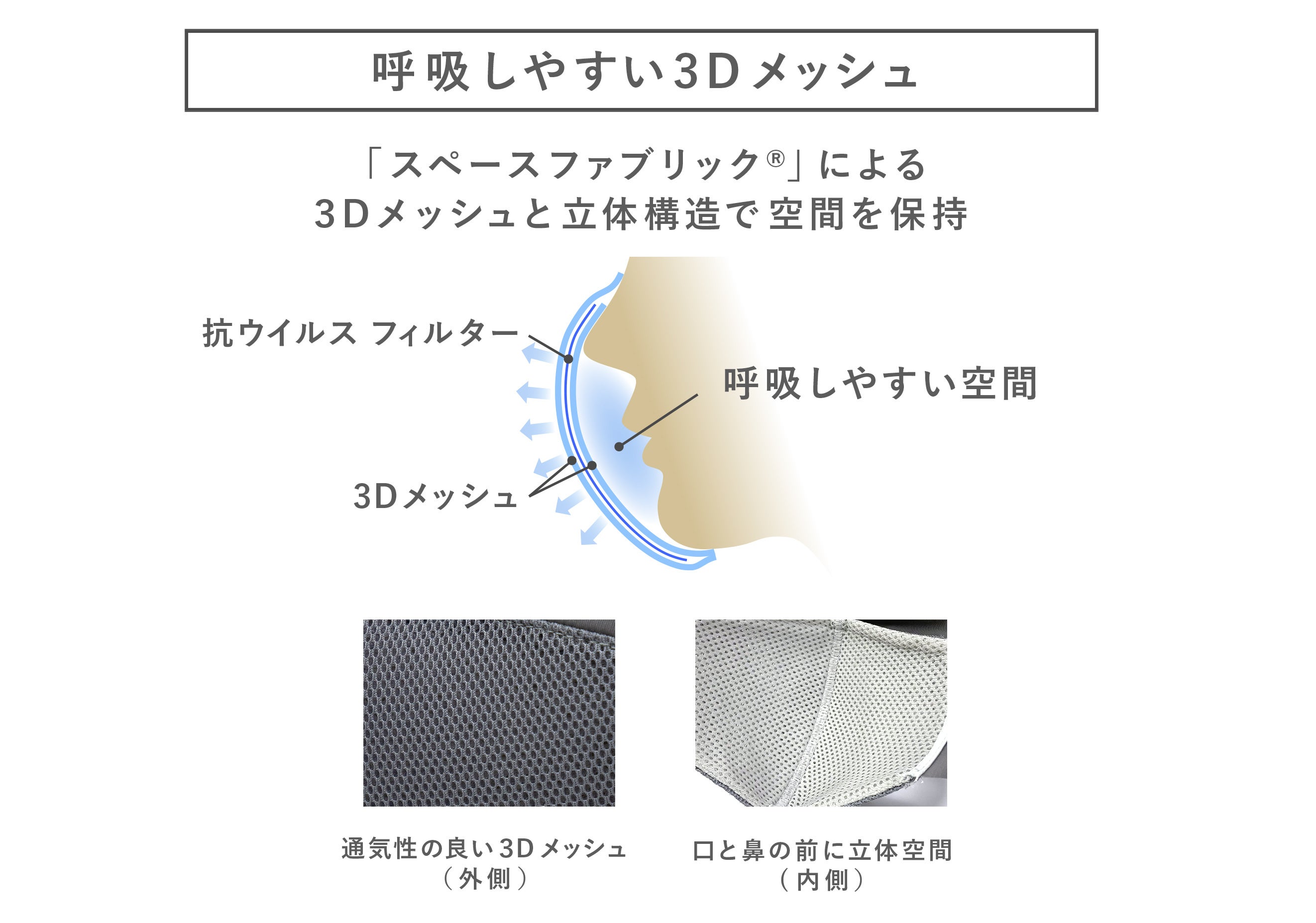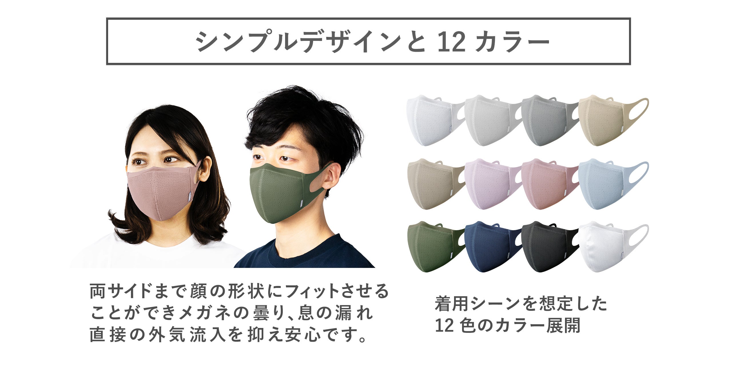 「抗ウイルス技術」「呼吸がしやすい」「やさしい着用感」「12色のカラー展開」が評価されました。