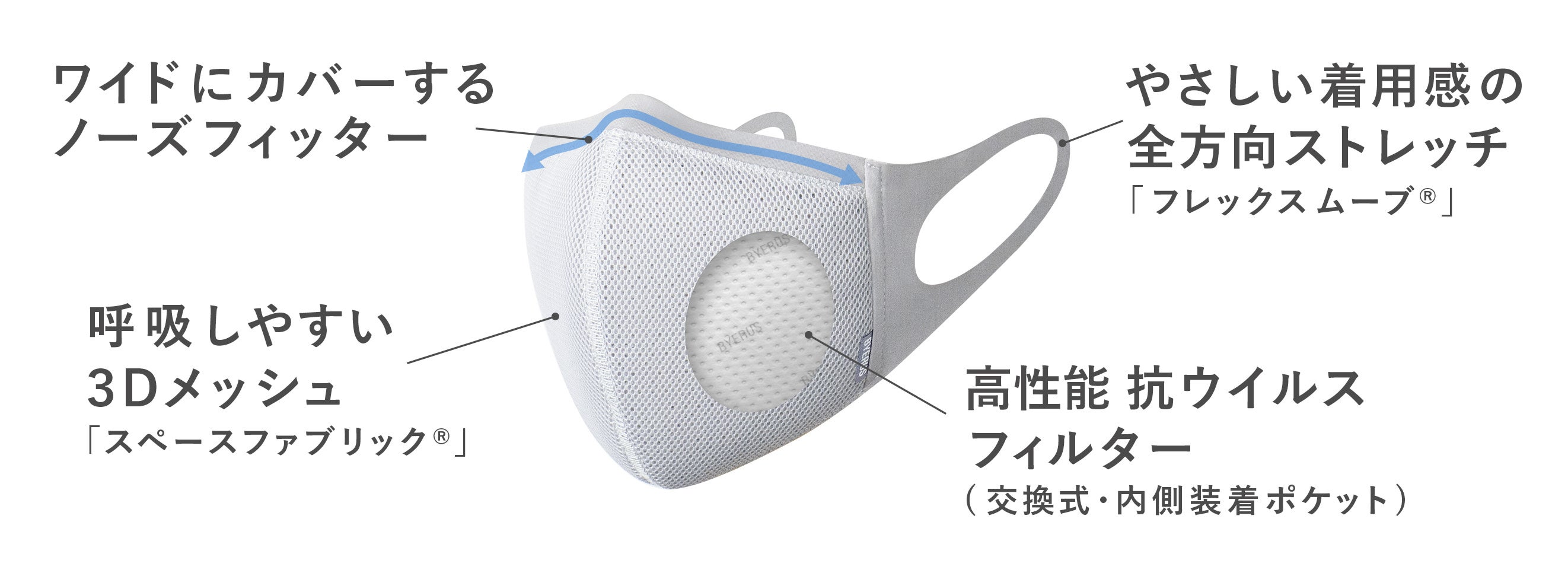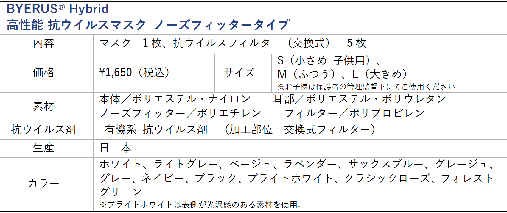 - BYERUS®Hybrid ⾼性能 抗ウイルスマスクについて