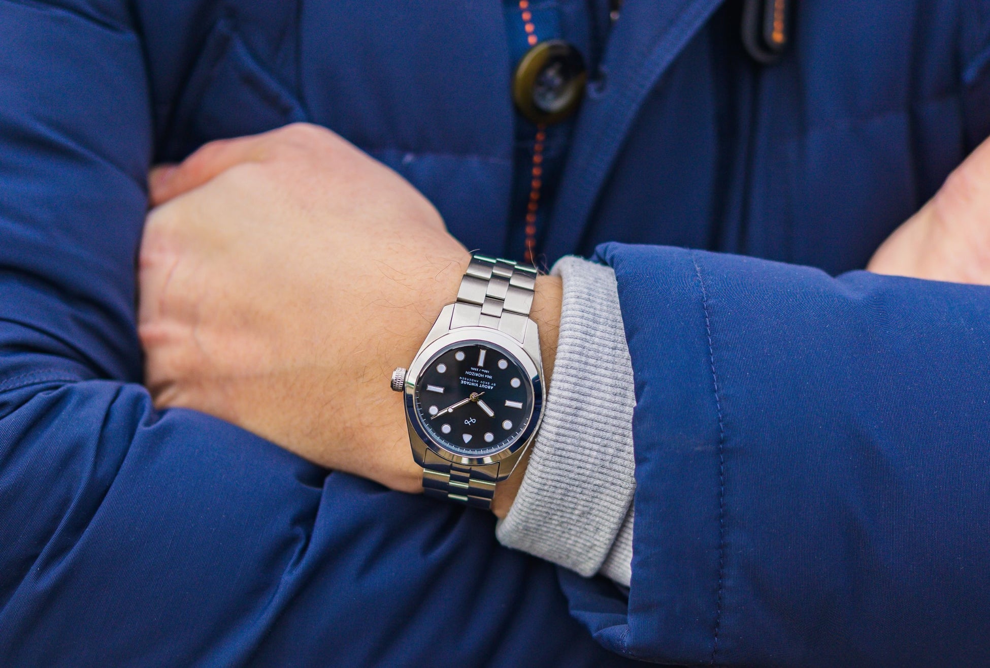 ダイバースウォッチのようにゴツゴツとした造りから、不必要なディテールを最大限に取り払い、About Vintageらしい丸みのあるインデックスと時針にスイス製の蓄光塗装SuperLuminovaをし、傷にも強いサファイヤクリスタルのガラスで3針時計のデザインを完成させました。