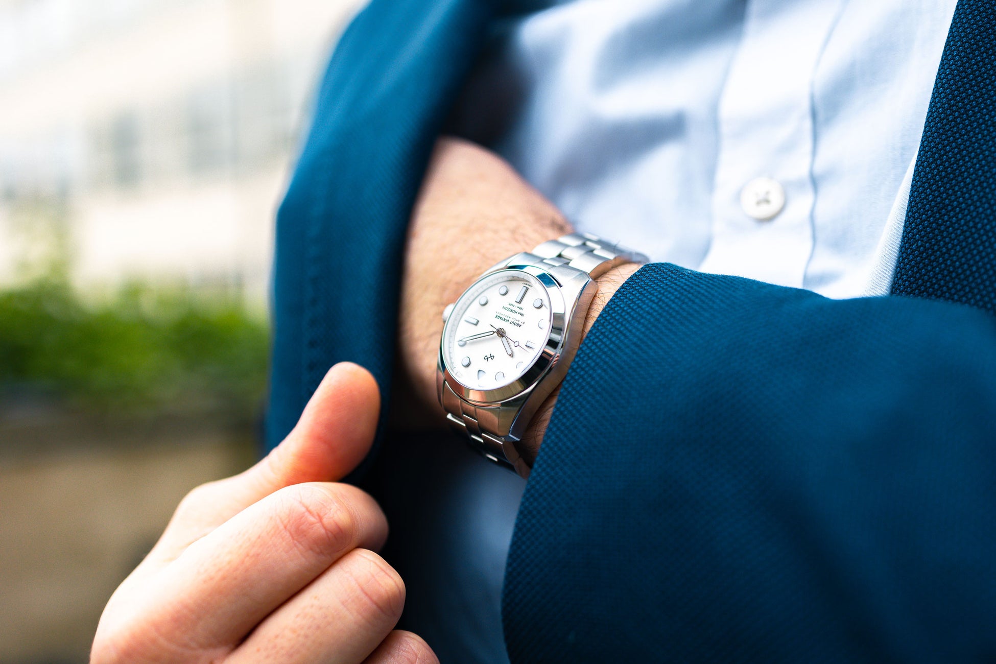 この時計は仕事用にはもちろん、アクティブなスポーツの場面でも、ホテルのラウンジでカクテルを手にするようなラグジュアリーな場面でも適応できることを想定して設計されました。