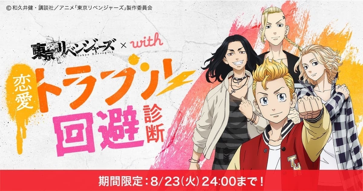 「自分の恋愛価値観」/「相性が良いキャラクター」が分かる!『東京リベンジャーズ』×『with』2種類の診断コンテンツを8月10日より期間限定で提供開始