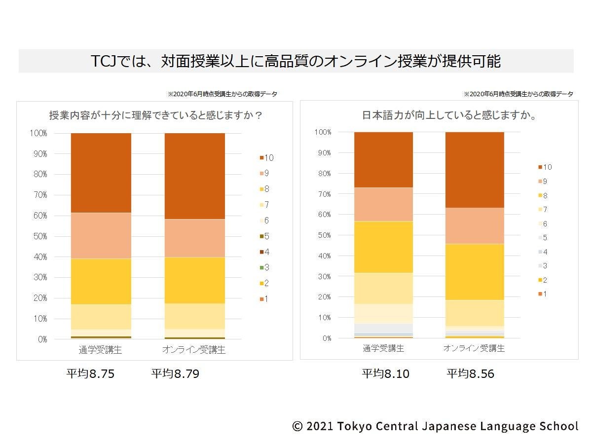 受講生を対象にした授業評価アンケートでは、オンライン授業と対面授業で授業内容の理解度や日本語力の向上度の結果に遜色がありませんでした。