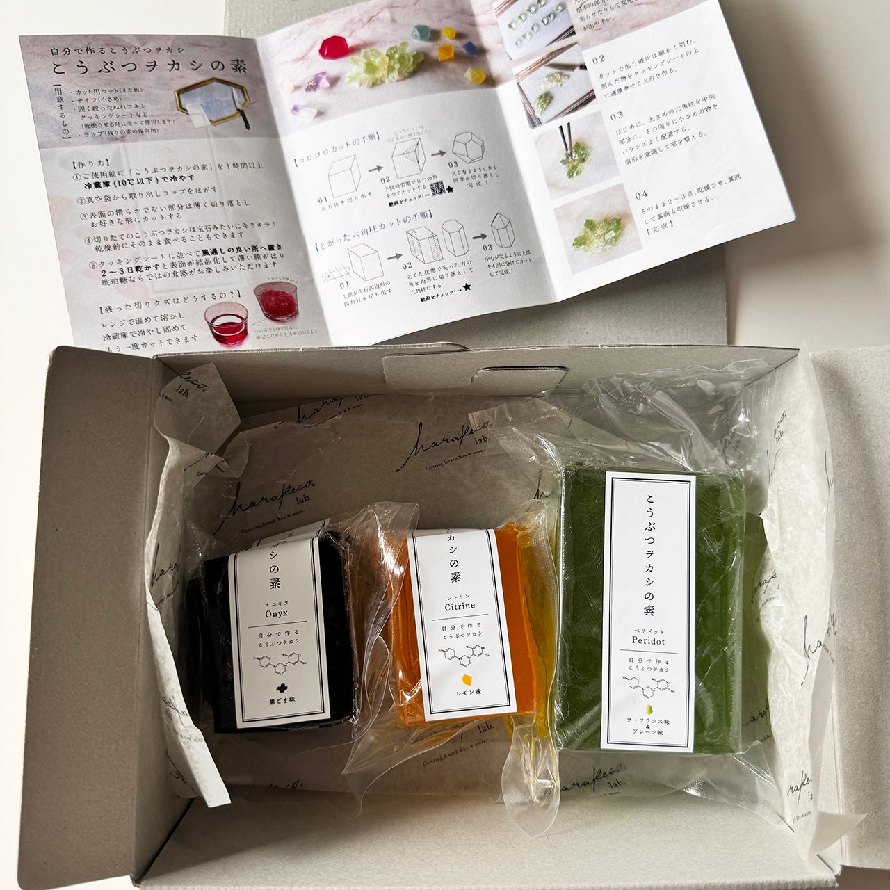 夏休みに!ハラペコラボ、自宅で気軽に琥珀糖の制作ができる「こうぶつヲカシの素」を7月12日から期間限定で販売開始