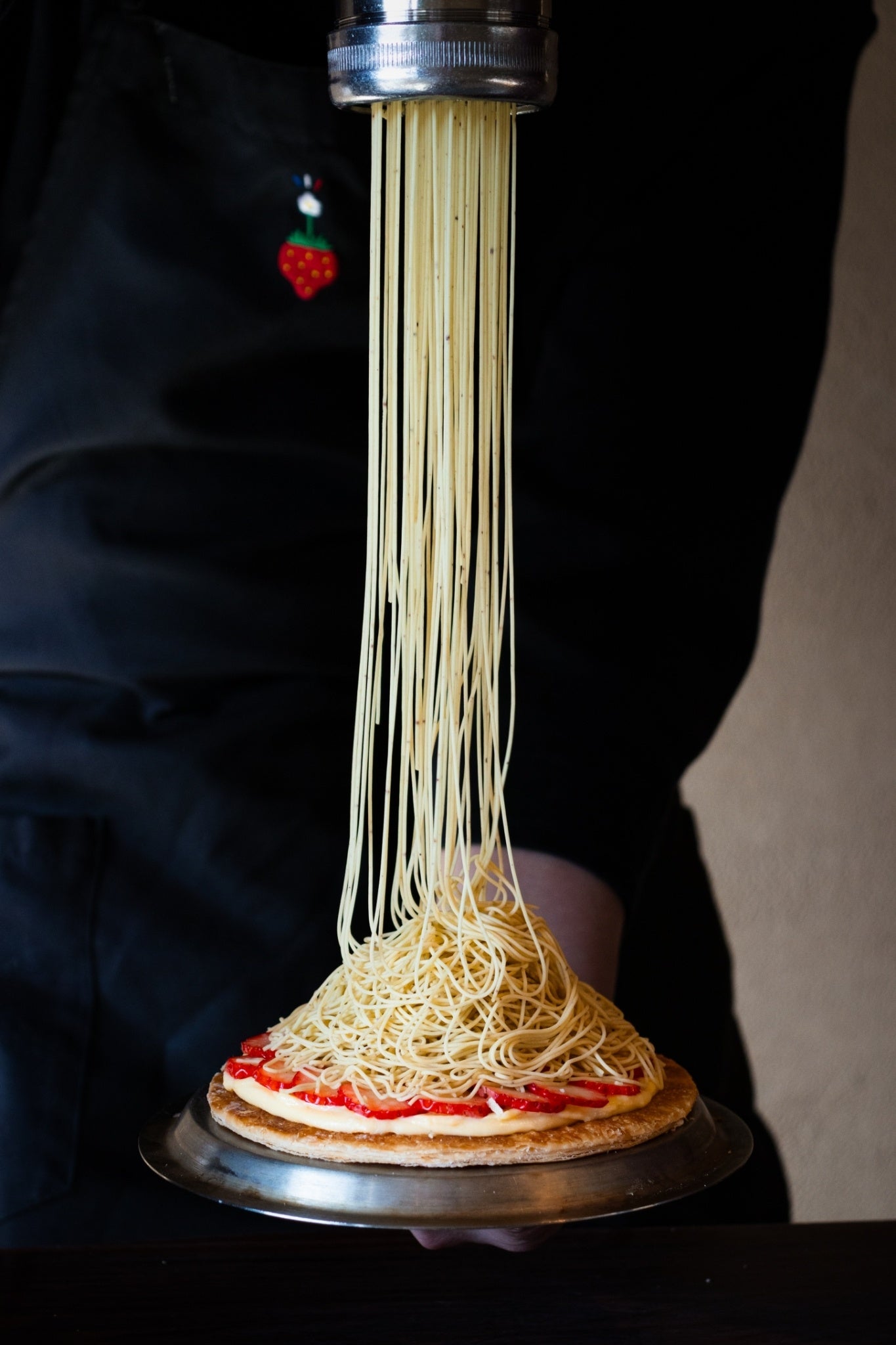 最近では独自の製法で、お客さまの目の前でおつくりする創作ミルフィーユの「GARIGUETTE」や、絞りたてモンブランのデセールを提供する「和栗専門 紗織」といったスイーツブランドにも力を入れています。