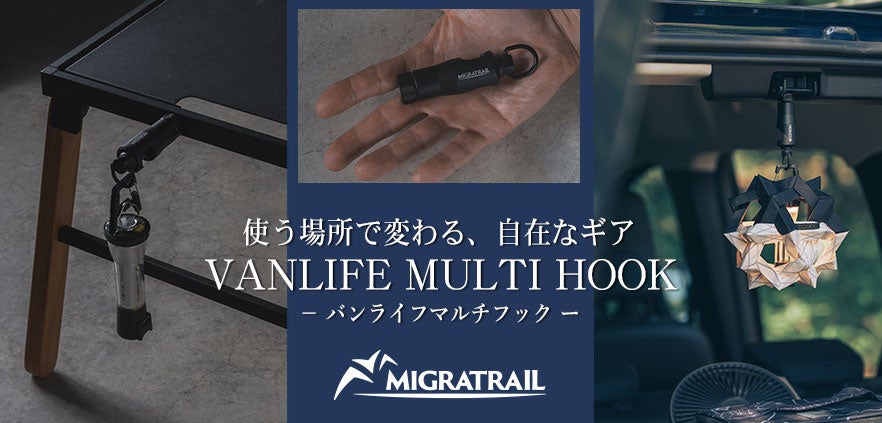『MIGRATRAIL(ミグラトレイル)』より、使う場所で変わる、自在なギア【VANLIFE MULTI HOOK - バンライフマルチフック】登場!
