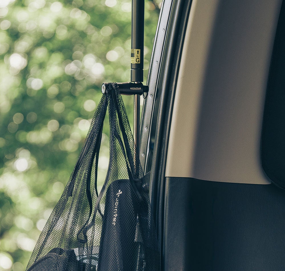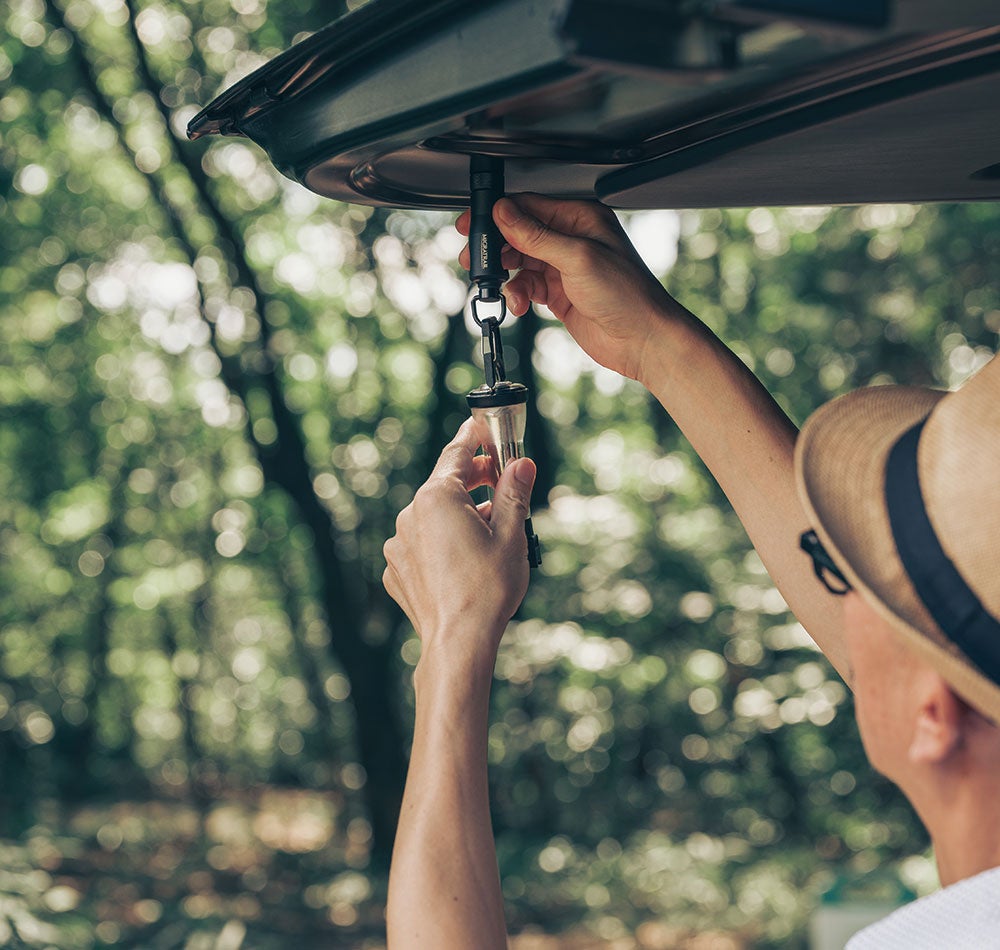 手のひらに収まる軽量でコンパクトなマルチフック。 バンライフの快適性を高め、アウトドアから普段使いまでさまざまなシチュエーションで活躍する。