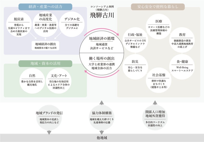 コンソーシアム展開により、地域の未来像づくりのための多様な領域の事業を各地で創出予定