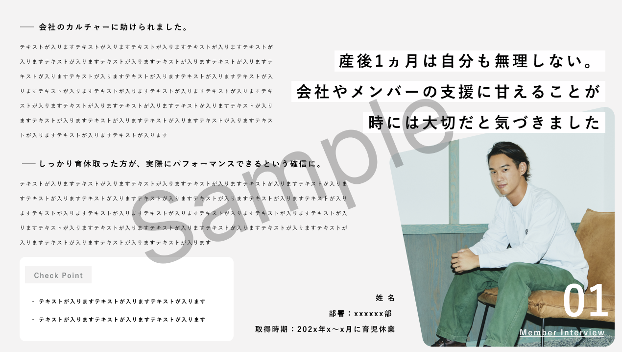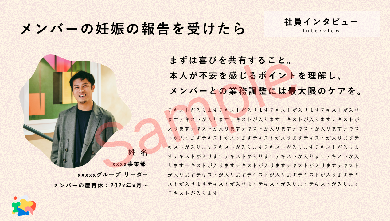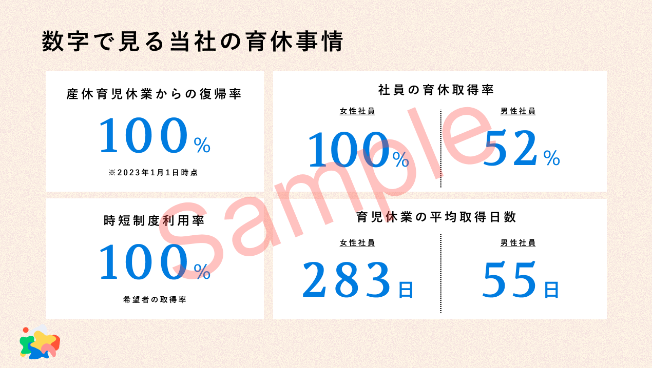 独自データを元に夫婦で学べる「育休ガイドブック」を制作し、2020年より80を超える自治体や地方公共団体等および企業で産休・育休の取得支援をしてまいりました。これら3つのアセットをかけ合わせ、制度づくりのみならず”風土の醸成”に寄与する産休・育休ガイドブックの制作および採用ブランディングによって、企業の産休・育休取得支援の取り組みを中長期的な企業価値向上に繋げていきます。