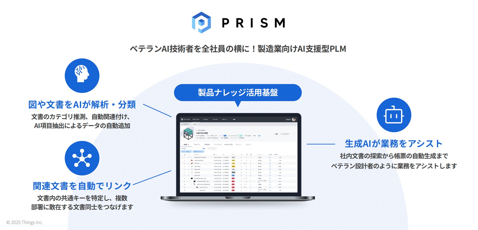 これまで私たちは、製造業の様々な部署に散在した技術情報の一元化を通じて、品質工場や手戻りの減少、工程短縮を支援してまいりました。現場に深く入り込み、属人化や情報の断絶といった根深い課題に向き合う中で、「PRISM」は多くのメーカーの皆さまから評価をいただき、今では“無いと業務が回らない”存在として製品開発の現場でご活用頂いています。