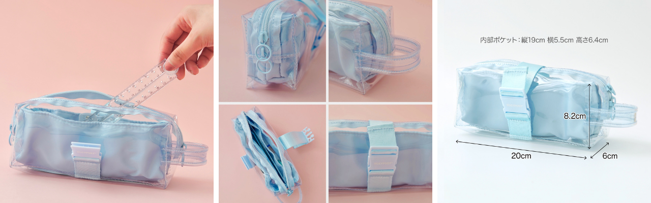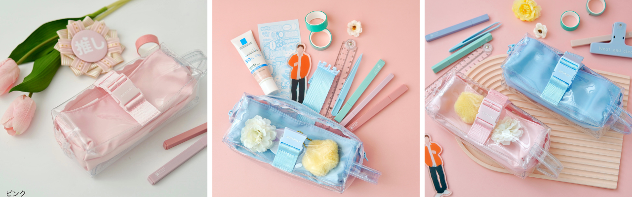 ④クリア収納ポーチ 各 3,200円(税込) 全2色(ピンク・ブルー)