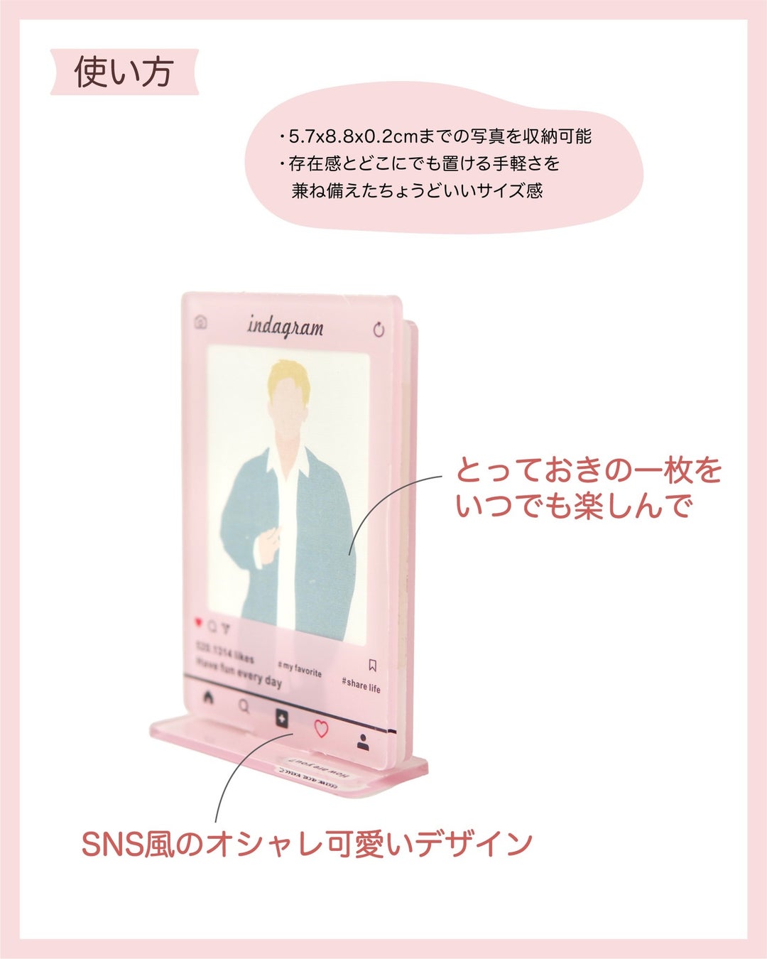推しの写真やお気に入りのメモリアルショットを、いつでも目に触れられる場所に飾ることが可能です。