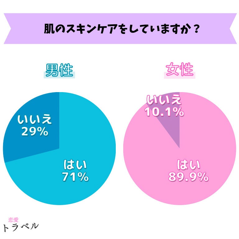 今回は肌のスキンケアについて全国の男女100名にアンケートを取った結果、全体の約8割の方がケアをしているという結果でした。