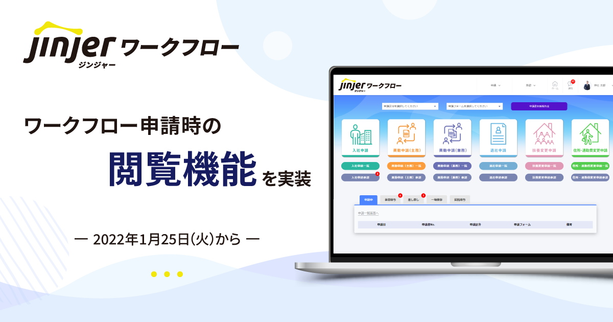 jinjer株式会社(本社:東京都新宿区、代表取締役CEO:加藤 賢)が提供する、「ジンジャーワークフロー」に、回覧機能を1月25日(火)から正式に実装することをお知らせいたします。