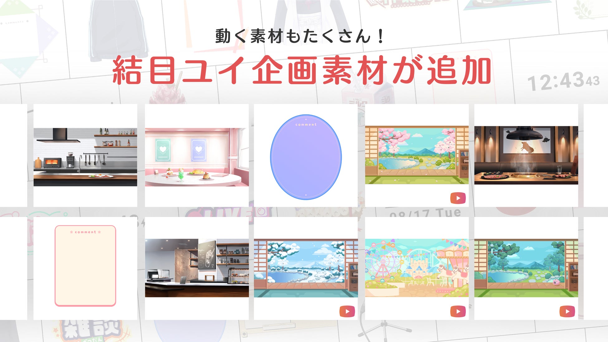 - 第1弾:「結目ユイコラボ素材」のサービス内実装