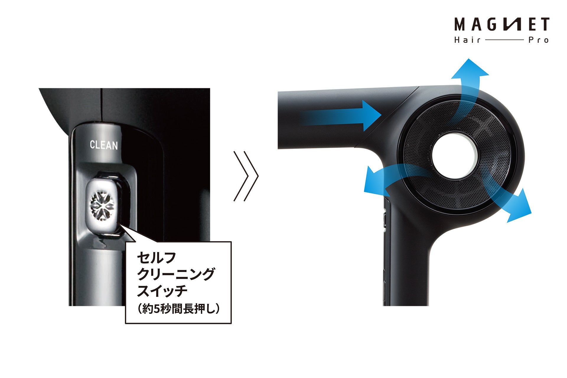 わずか350gの業界最軽量クラス*2 かつ髪質や仕上がりに合わせて温度・風量を15通りに設定できるセルフカスタマイズ機能といった高性能な機能は従来モデルから変わらず、ボタンひとつで吸込口のほこりを吹き飛ばす「セルフクリーニング機能」を新搭載し「マグネットヘアプロ ドライヤーゼロ ブラックプラス/ホワイトプラス」が誕生しました。「マグネットヘアプロ ドライヤーゼロ ブラックプラス/ホワイトプラス」は、2023年12月1日(金)全国の正規取り扱い美容室にて発売。また、12月4日(月)より公式オンラインショップ、家電量販店での販売を順次開始いたします。