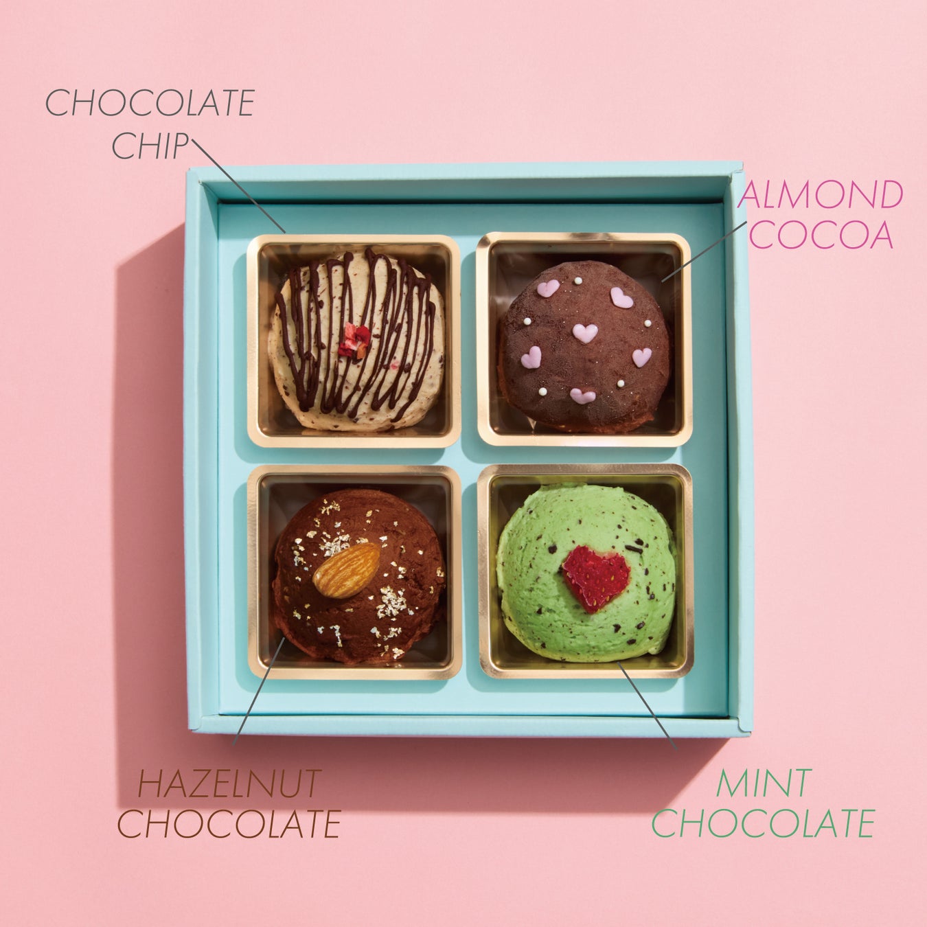 BOX【A】はTUTTOでも人気なチョコフレーバーの4種を1つのBOXにまとめ、たっぷりとチョコレートを楽しんでいただけます。