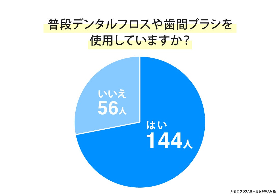 お口プラスでは、成人男女200人に「普段、歯間ブラシやデンタルフロスを使用していますか?」というアンケートを取りました。
