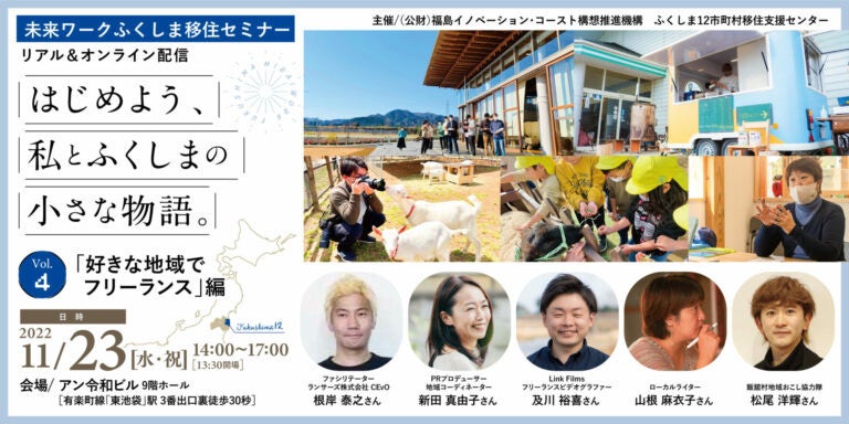 未来ワークふくしま移住セミナー『はじめよう、私とふくしまの小さな物語。』vol.4 好きな地域でフリーランス編を開催します