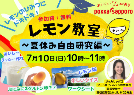 ・7/10(日)10:00-11:00 「レモンのひみつにドキドキ!『レモン教室』」(ポッカサッポロフード&ビバレッジ株式会社〈東京都渋谷区〉)