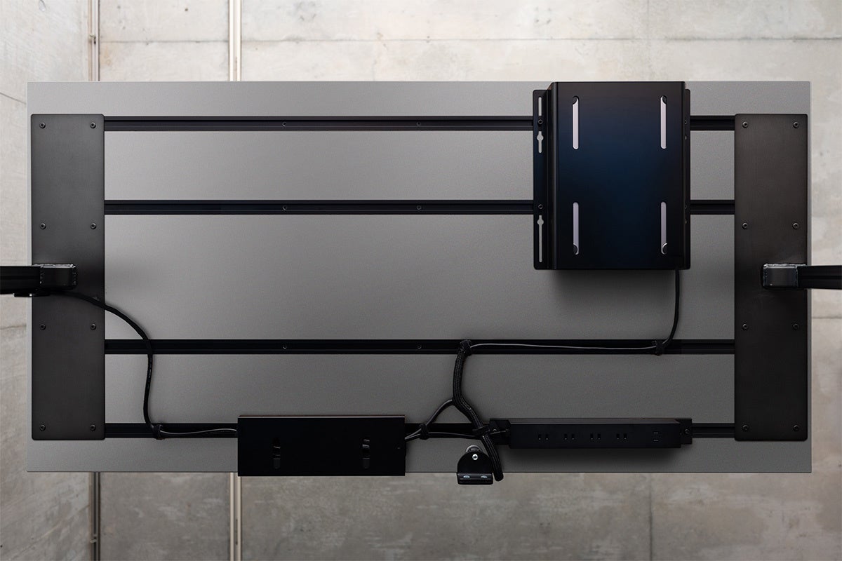 PREDUCTS DESKは「Desk Modular System」を備えたモジュール式拡張デスクです。 天板裏に埋め込んだ4本のレールにより、様々なモジュールが装着可能なDESK MODULAR SYSTEM。電源タップを固定しケーブルを這わせたり、トレイを装着してPCや書類が格納できます。(特許取得済)