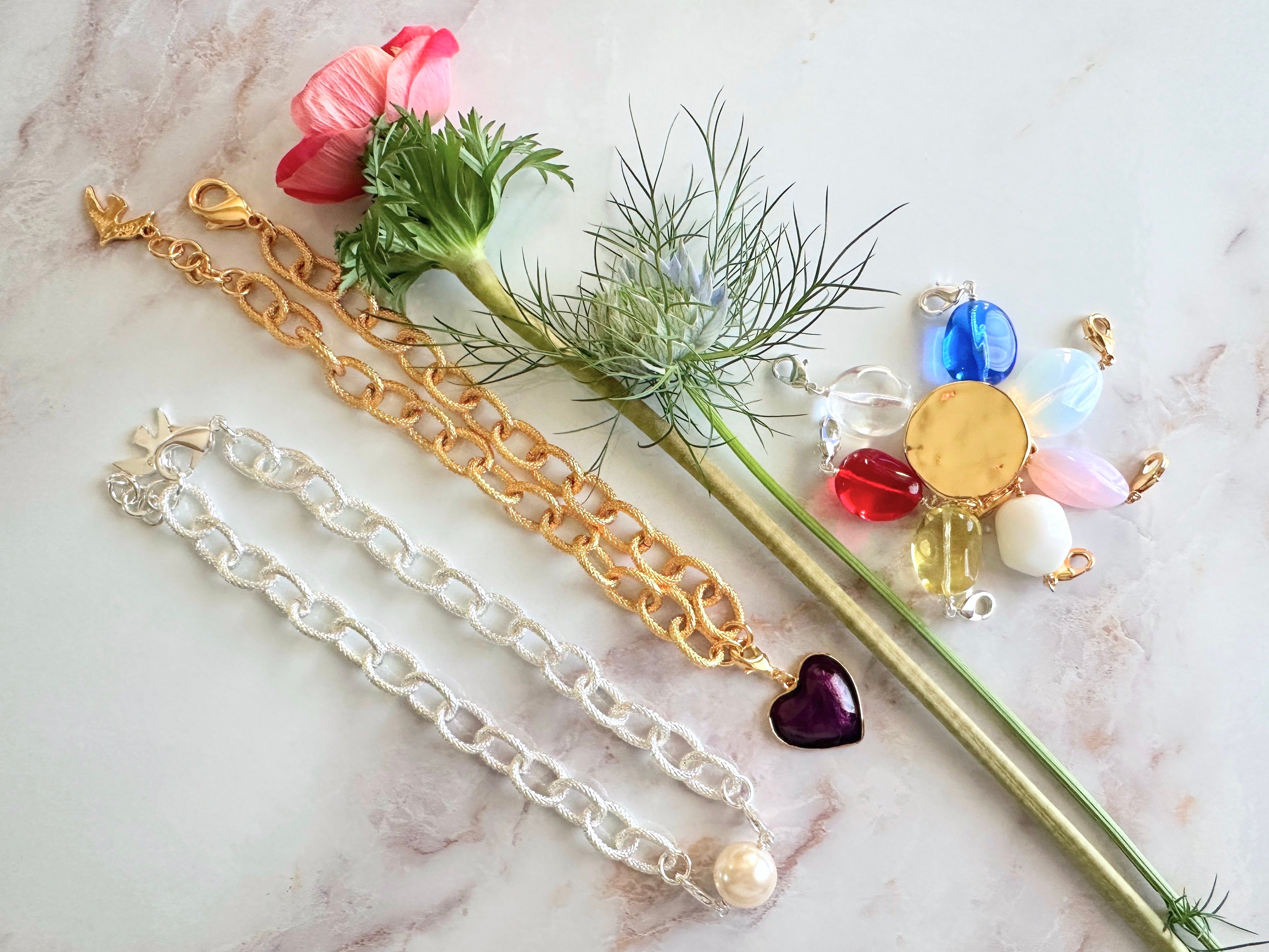 本国フランスでも爆発的な人気を誇るのが「メッシュチェーン」を使ったカスタムできるネックレスです。洗練された存在感のあるチャンキーなチェーンのネックレスは、驚くほどに軽量。中央に合わせるガラスやモチーフを簡単に変えることができる、楽しさ満載のネックレスは「CÉCILE ET JEANNE (セシル・エ・ジャンヌ)」ならではの遊び心いっぱいのカラー展開。目移り必須ですが、お気に入りが必ず見つかるはず!