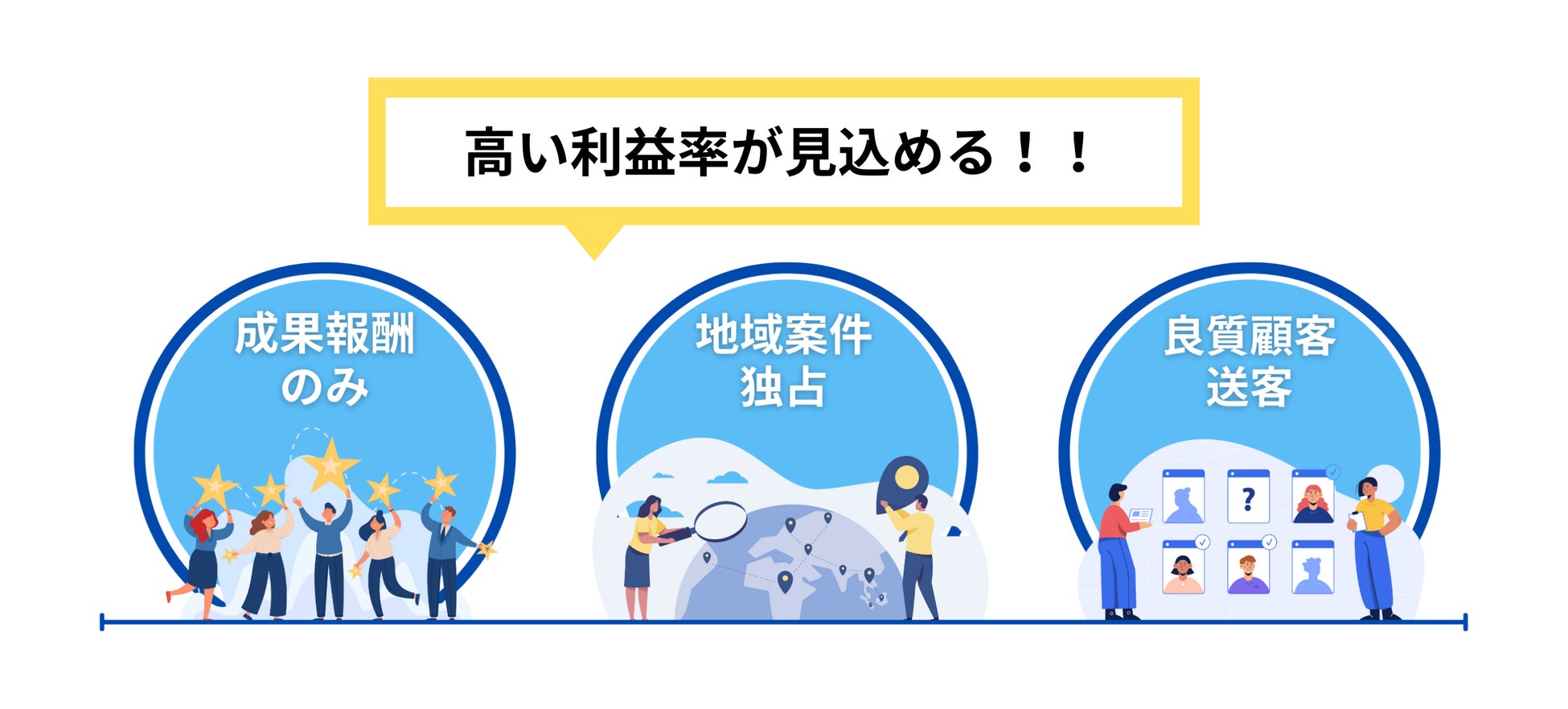 質の良い顧客をしっかりとご紹介します。営業している時間がない、なかなか契約に結びつかないなどといったお悩みも解決できます。