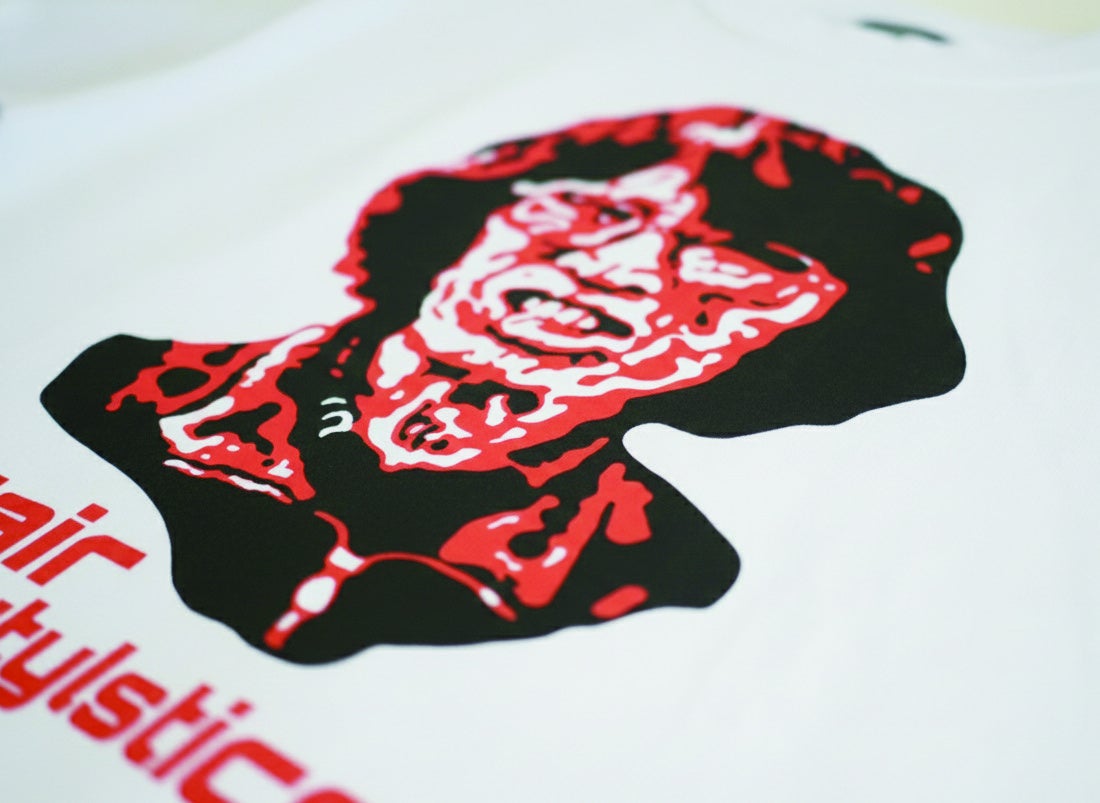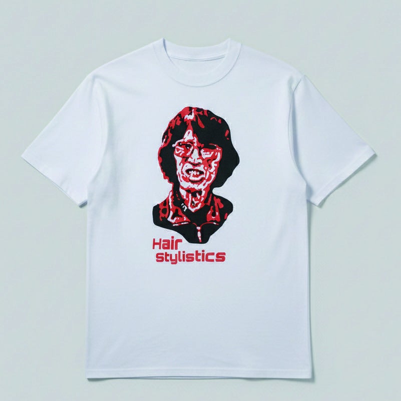 2018年に発売されたヘアスタのジャケットデザイン集『"Hair Stylistics CD-R Cover Art Works" BOOK WITH CD "BEST!"』(TANG DENG刊)と同時にリリースされ、好評を博しながら生産が終了していた『Throbbing GRIZZLY』のTシャツを、肉厚な生地で再構築して復刻。