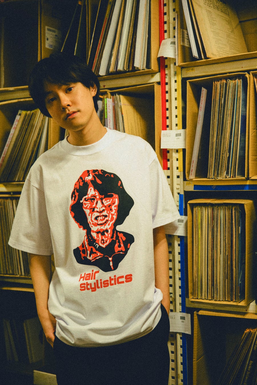 boidからリリースされた『Monthly Hair Stylistics』シリーズ(新作CDを12カ月連続で発表したプロジェクト)からセレクトしたグラフィックを、Tシャツとして再構成。