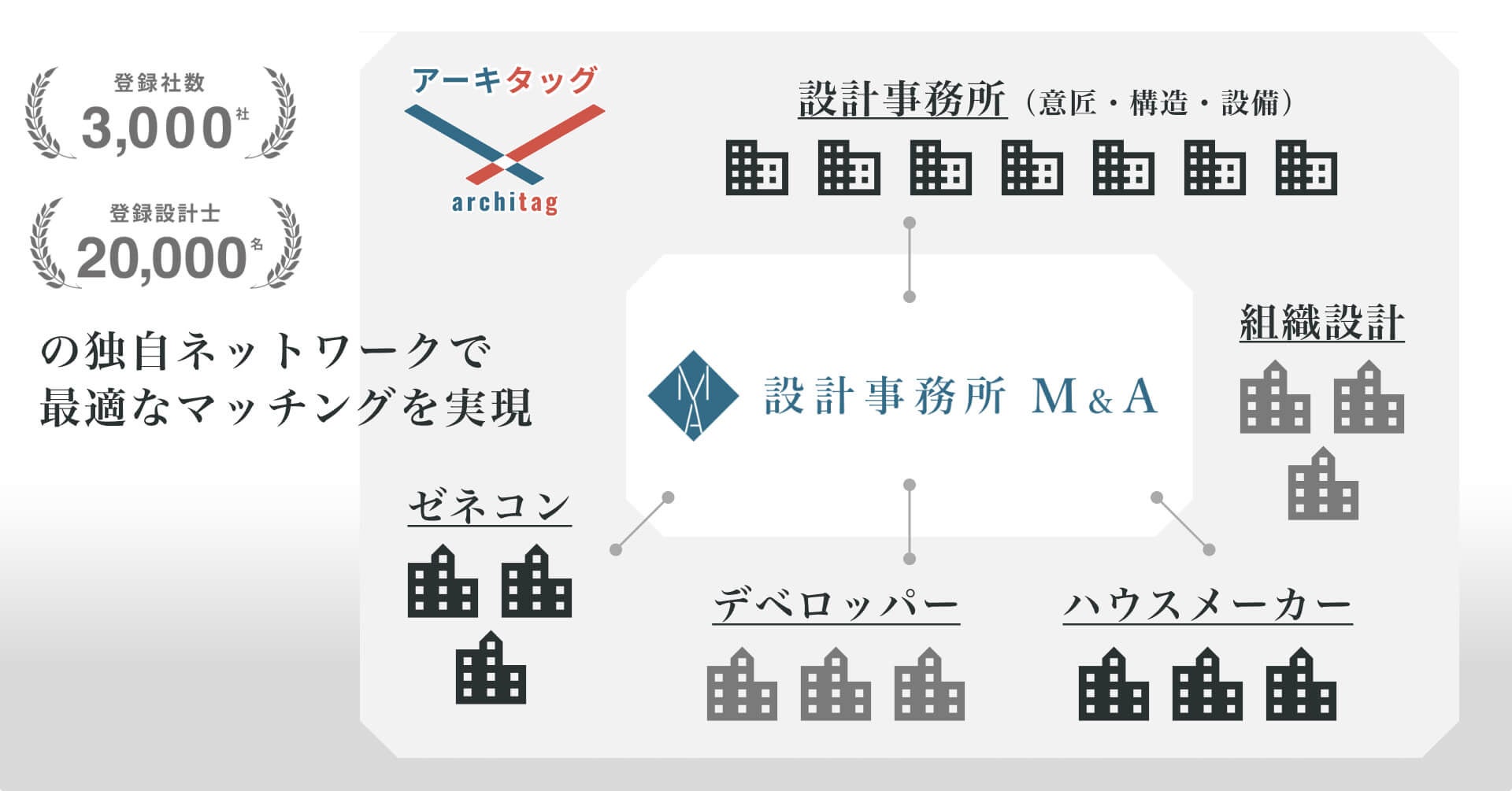 事業内容:建築設計に特化した M&A・事業承継の仲介サービス「設計事務所 M&A」の開発及び運営、設計事務所がタッグを組むサービス「アーキタッグ」の開発及び運営、建築家とつながるサービス「titel (タイテル) 」の開発及び運営 等