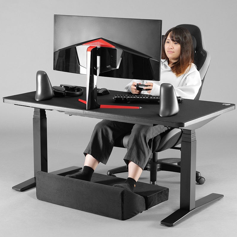 ゲーミングチェアが大きすぎて床にかかとが付かない人に!デスク下をふかふかで埋める、大判足置きクッションを発売