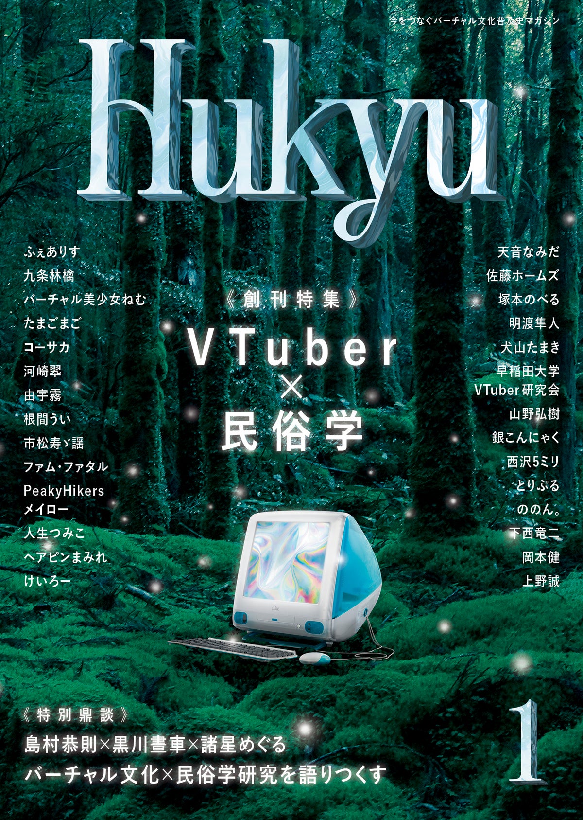 雑誌「Hukyu」は、インターネットで普及する文化の「今」を紙面に留め、より多くの人々や次世代に届けることを目標としています。本誌の特集は【VTuber×民俗学】。これまでVTuberや民俗学に親しんできた方々だけでなく、「VTuberってなに?」、「民俗学って難しい?」と感じられている方々も是非お手にとっていただけますと幸いです。