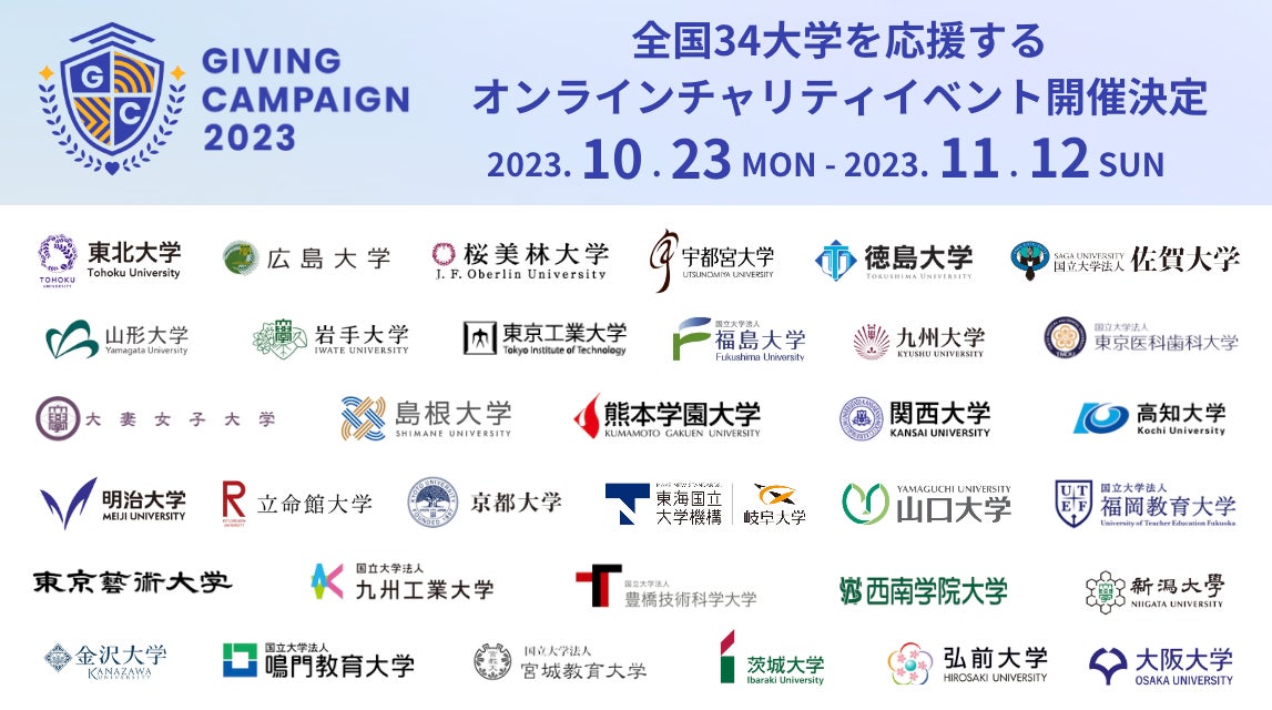 【過去最多34大学が参加】10/23から開催されるオンラインチャリティイベント「Giving Campaign 2023」で大学・大学生の活動を応援しよう!