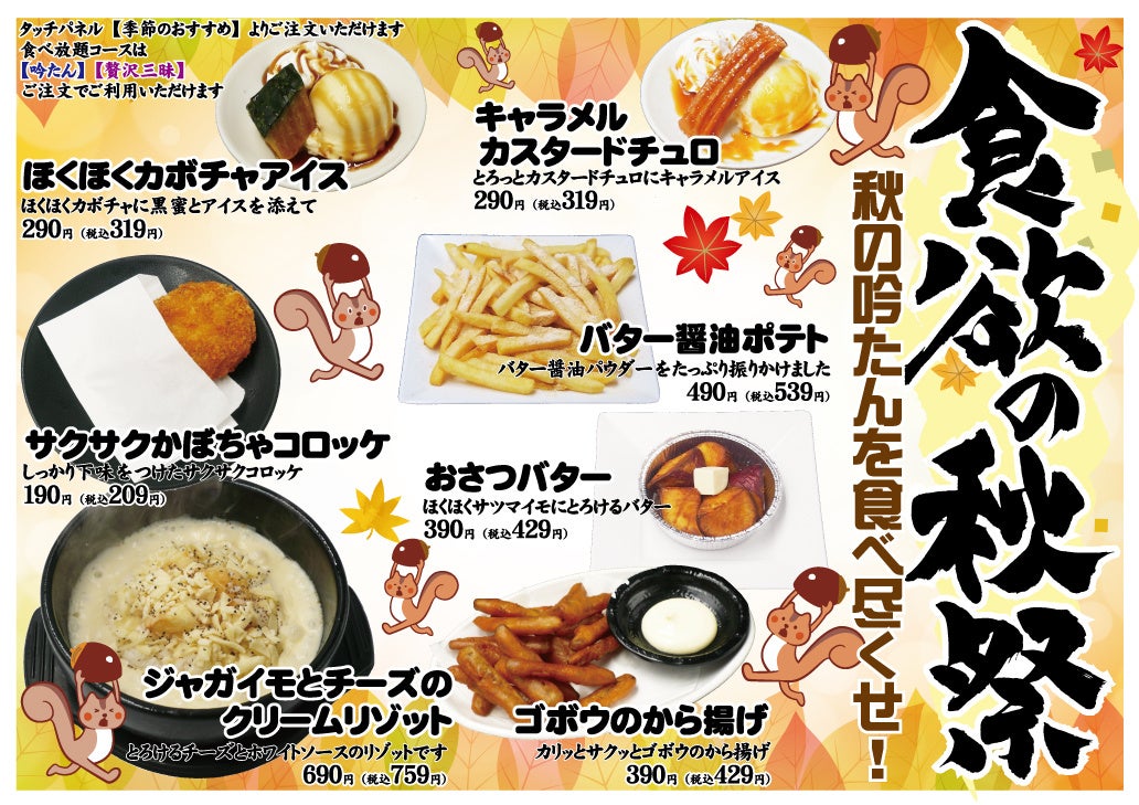 【タッチパネルで注文・配膳ロボットでお届け】の吟たんから秋限定メニューが登場いたします