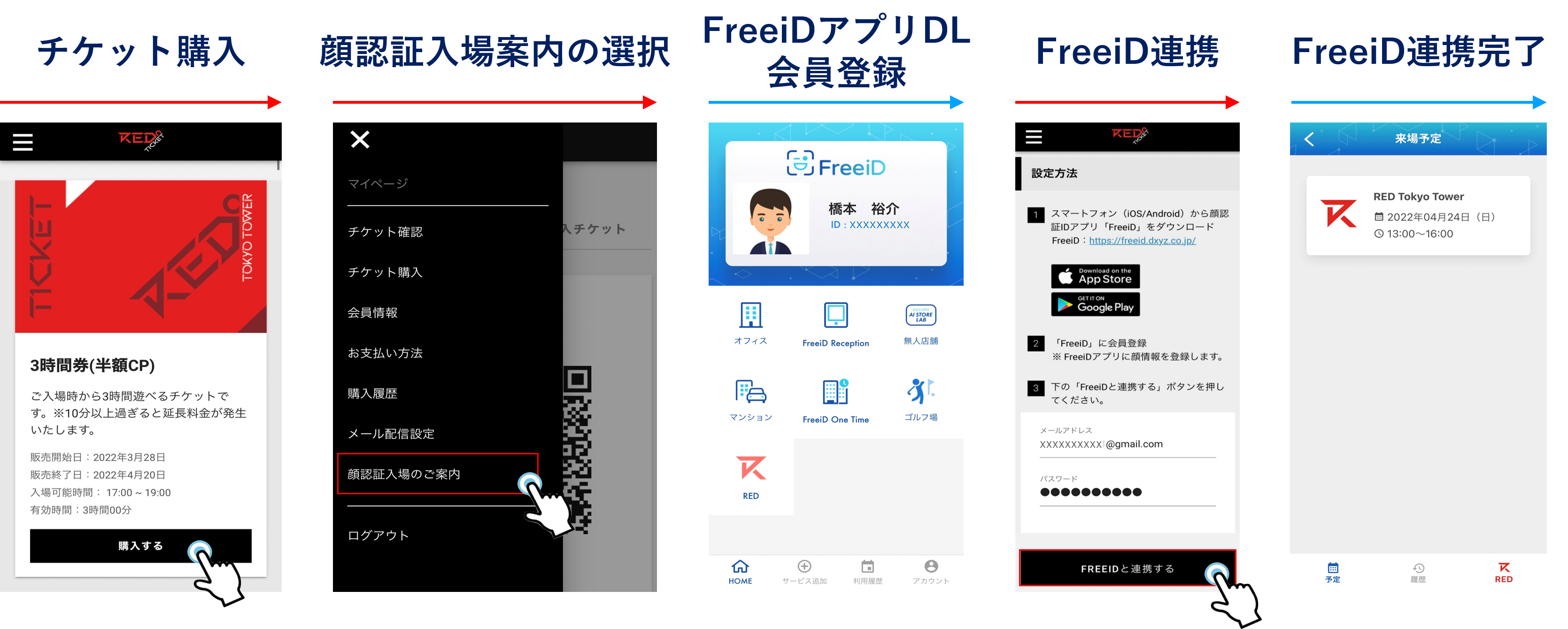 - 顔の「登録」:ユーザーはFreeiDに1度顔を登録すると自ら選択したサービスを利用できる